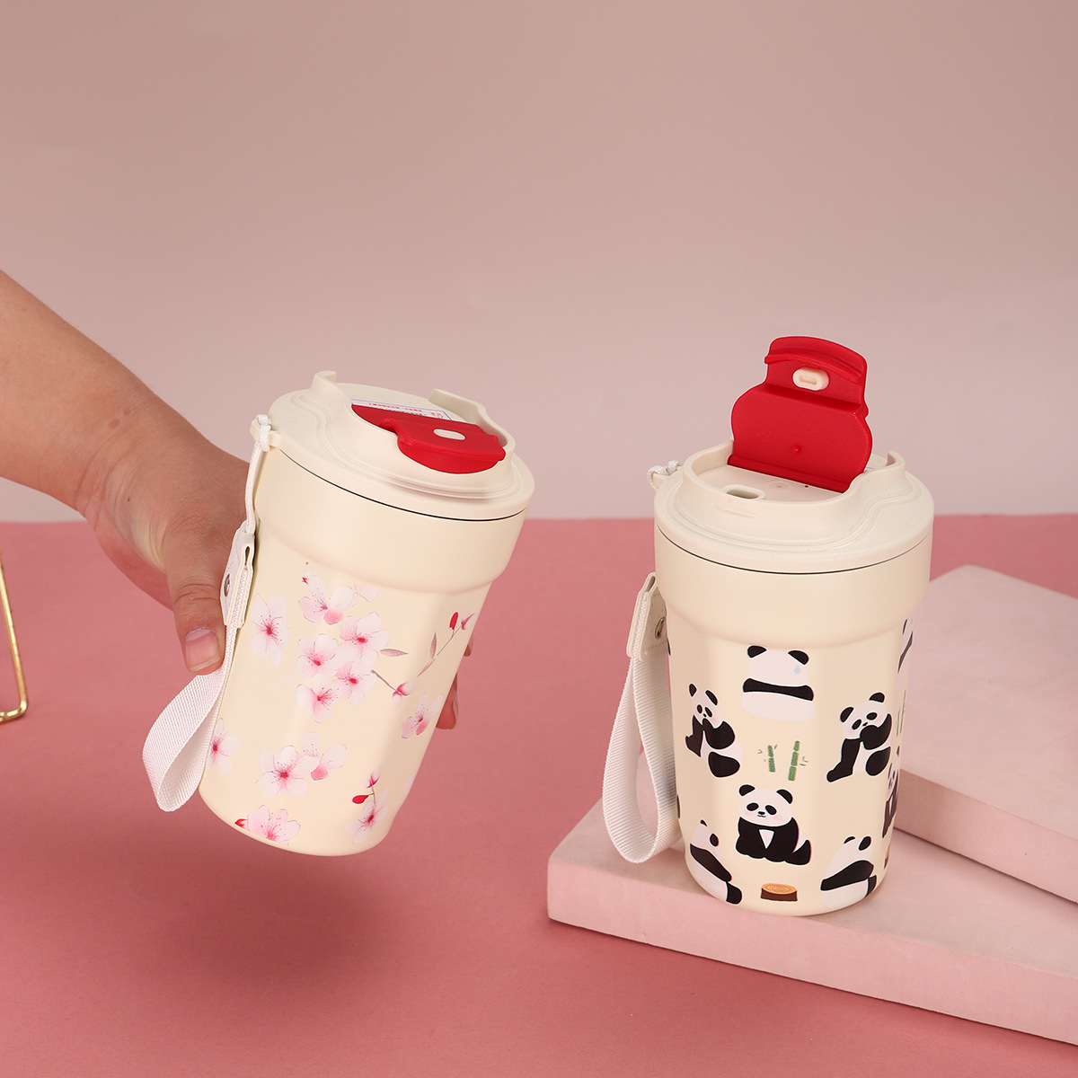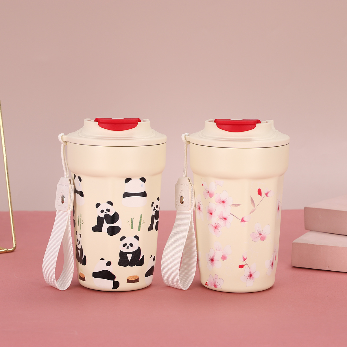 高颜值316不锈钢八角咖啡杯便携双饮保温杯简约便携带提绳随行杯