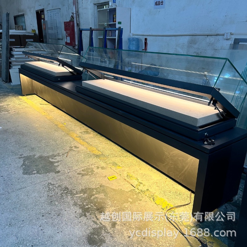 博物馆组合展柜|4.5米长矮柜工厂定制|钢板液压开启多功能长平柜