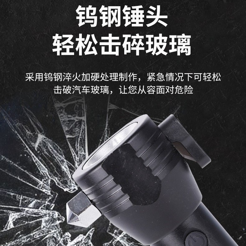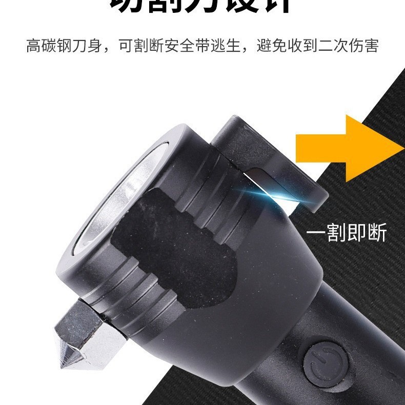 批发安全锤手电筒多功能USB充电手电筒工作手电车载安全锤破窗器