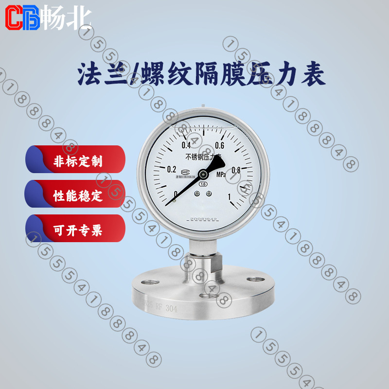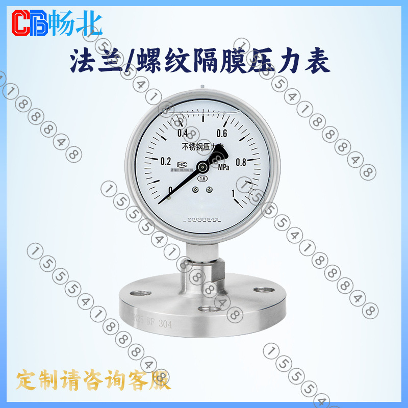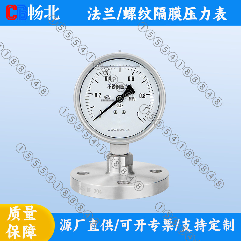 畅北厂家直销高精度隔膜耐震防腐压力表法兰螺纹不锈钢隔膜压力表