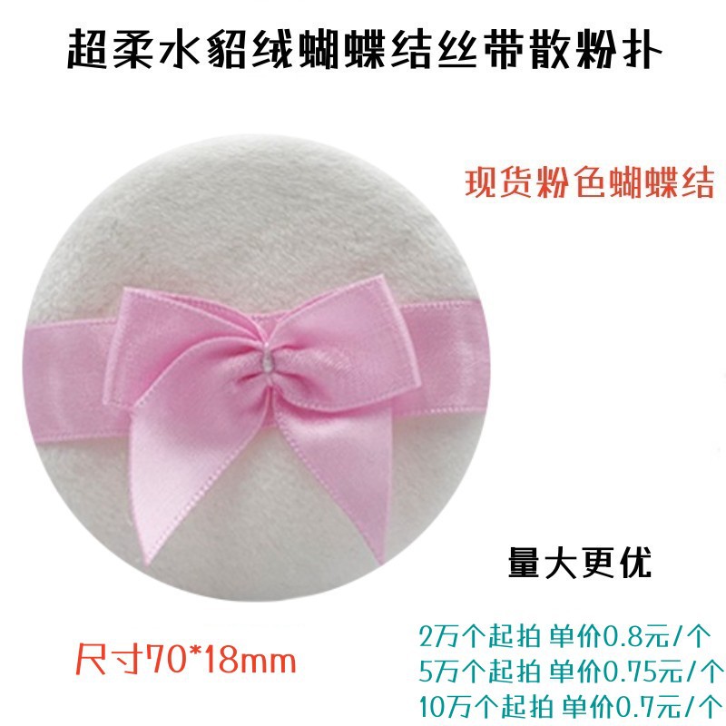 超柔水貂绒蝴蝶结 水晶绒丝带植绒干粉扑蜜粉 加厚 定妆 爽身粉扑