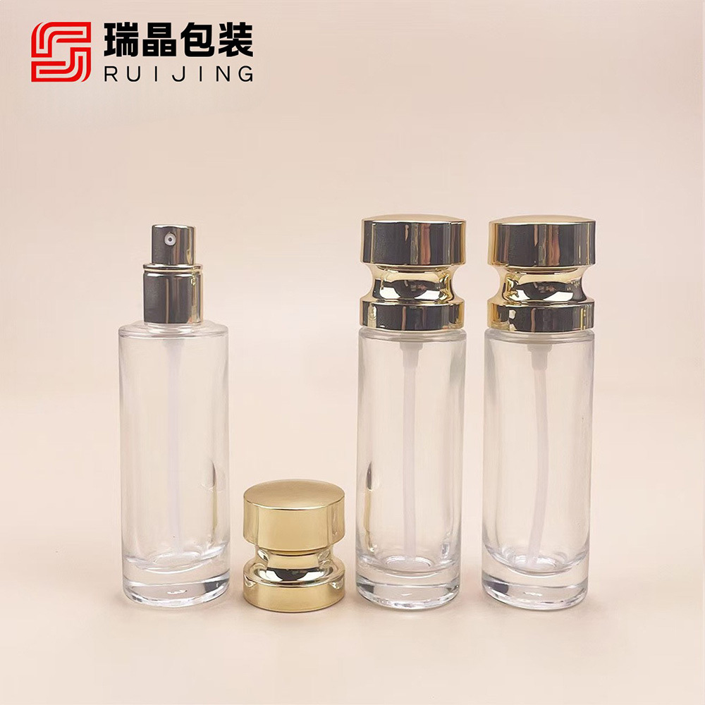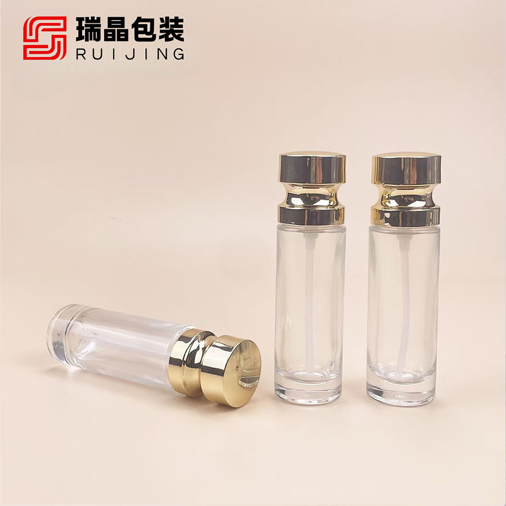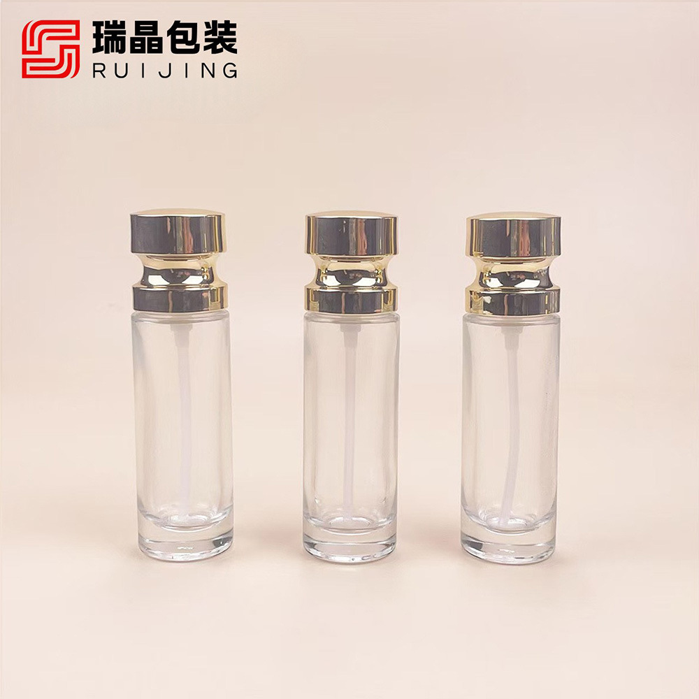 现货30ml金色按压乳液透明玻璃瓶精华液香水瓶化妆品粉底液瓶分