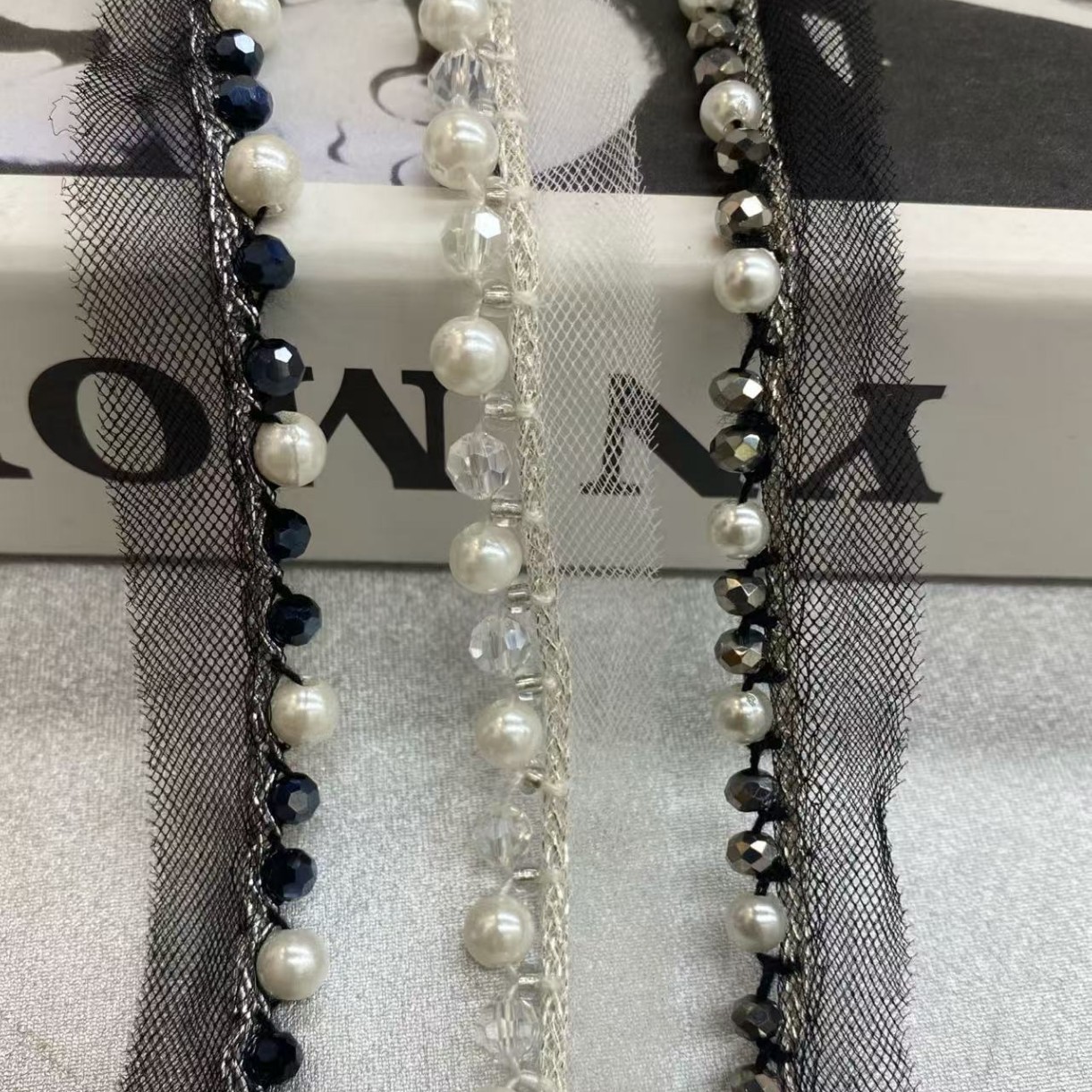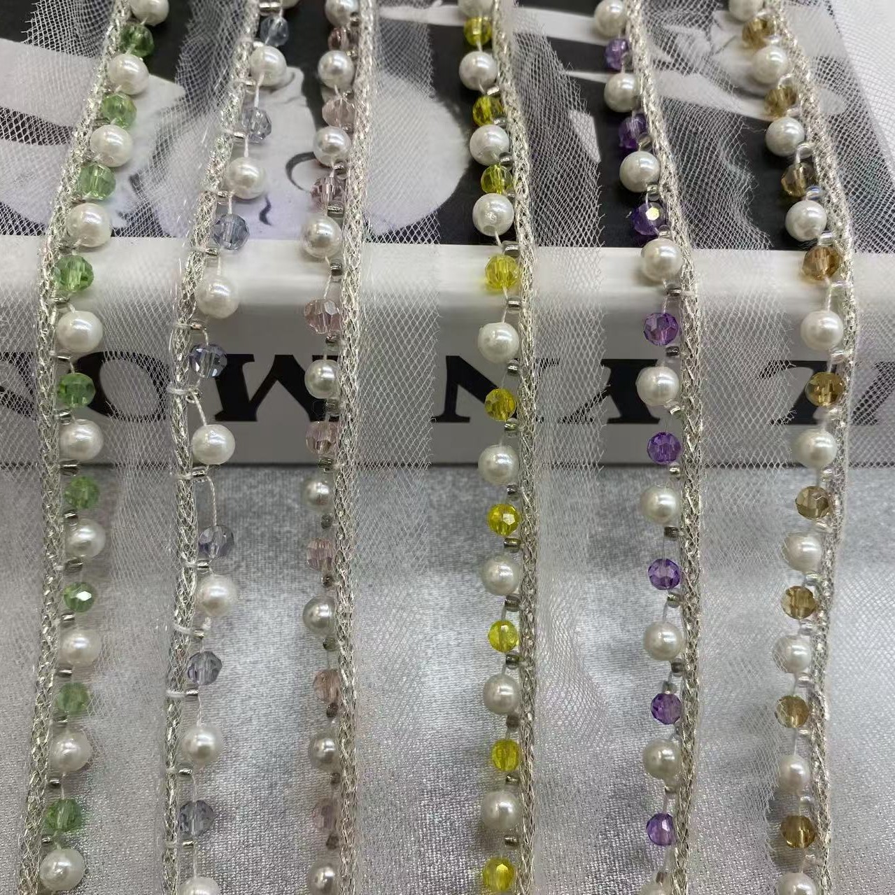 新款小香风网纱水晶泡珠花边diy裙边装饰辅料