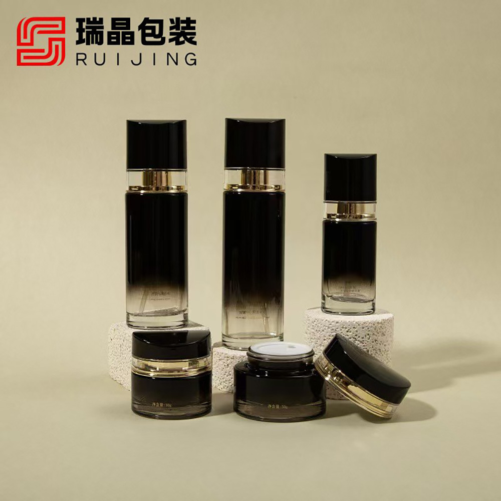 现货椭圆型护肤品包材玻璃瓶 黑色渐变玻璃瓶乳液喷雾瓶50g膏霜瓶