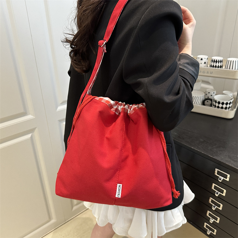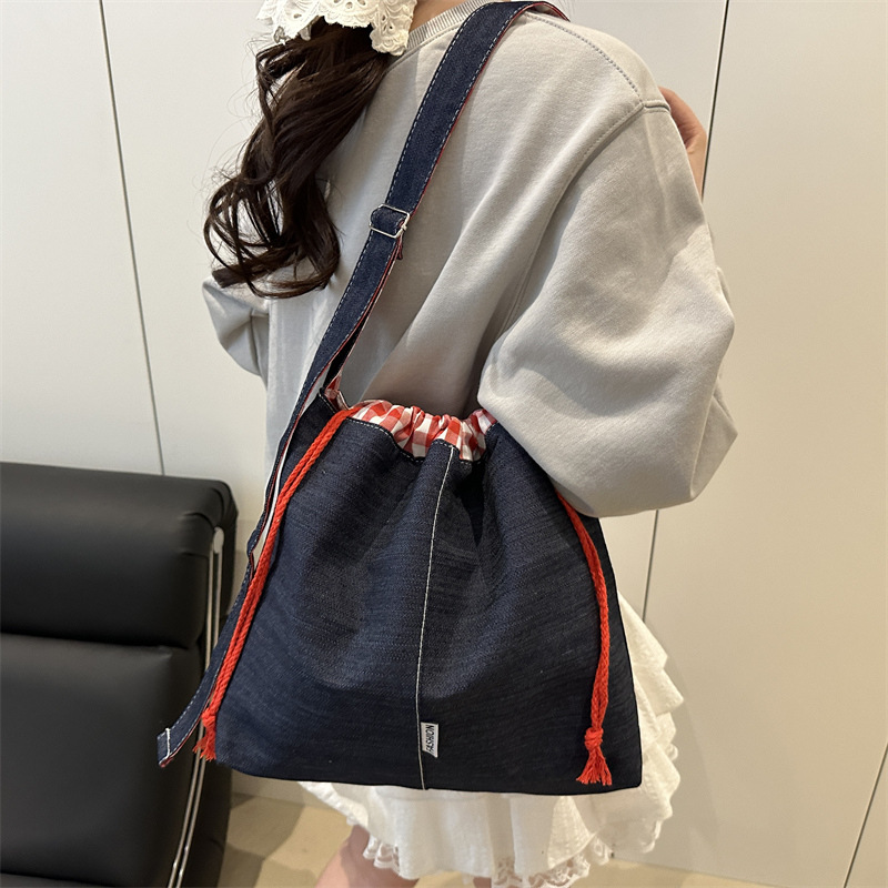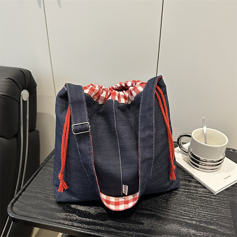 百搭可调节肩带学生书包牛仔格子斜挎包多巴胺色系单肩收纳包