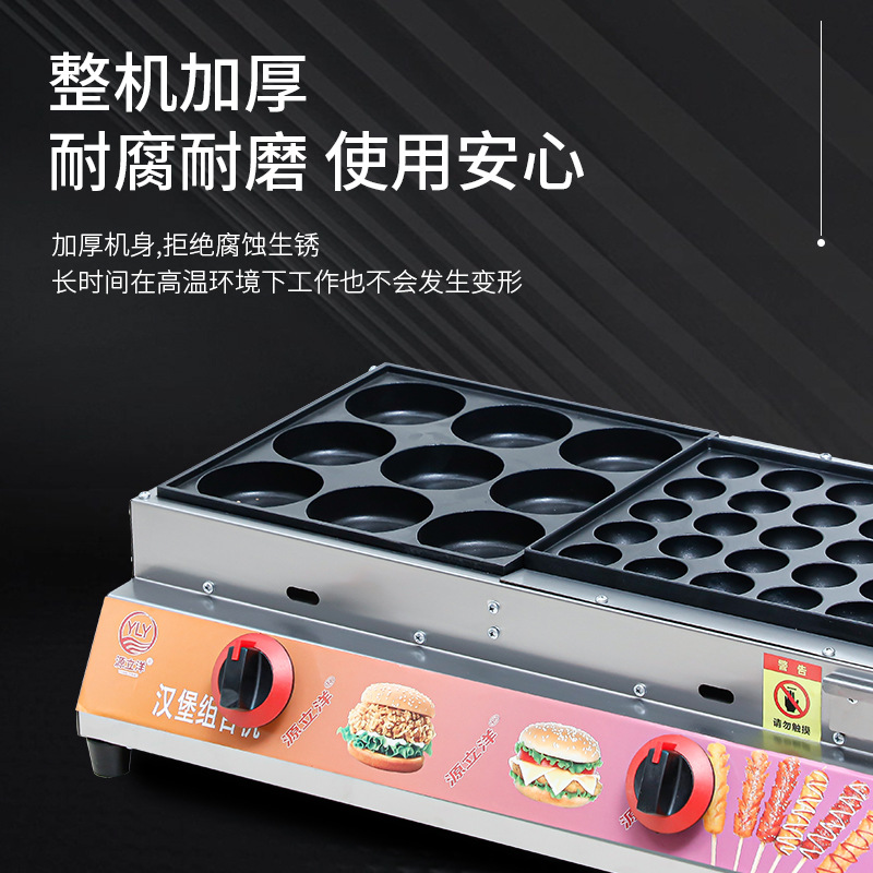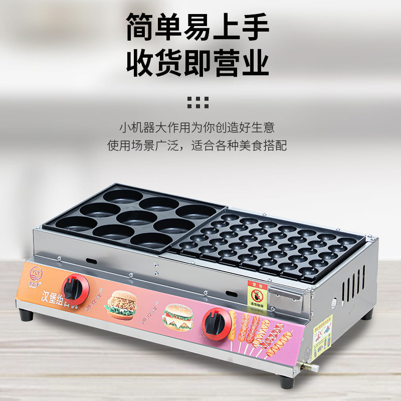 跨境商用多功能鸡蛋汉堡机18孔夜市摆摊燃气车轮饼红豆饼机