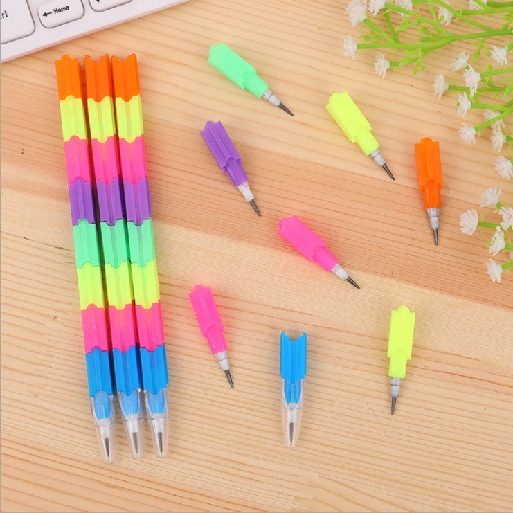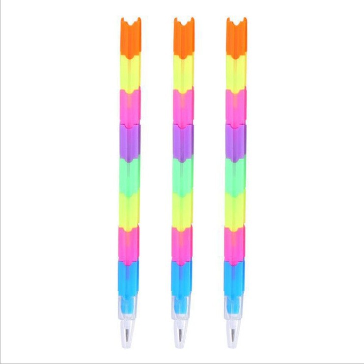 80怀旧文具创意彩虹多功能子弹头 积木笔铅笔百变变形8节彩色奖品