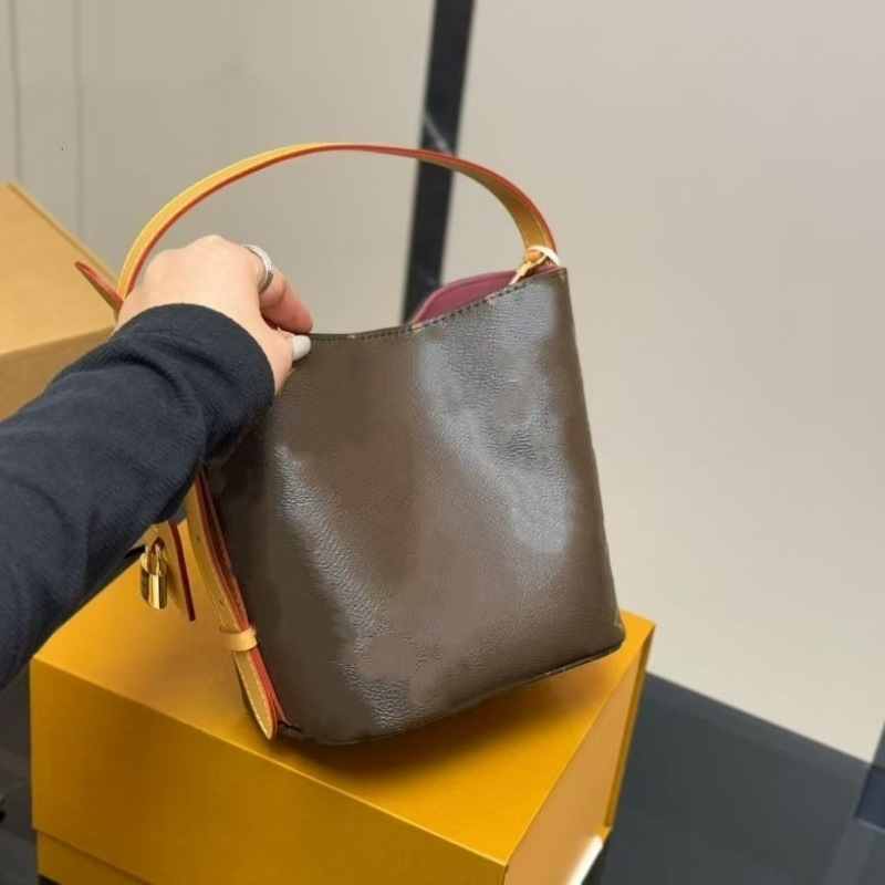 驴v家25新款老花真皮女包手提水桶allinbb包包单肩新款复古斜挎包