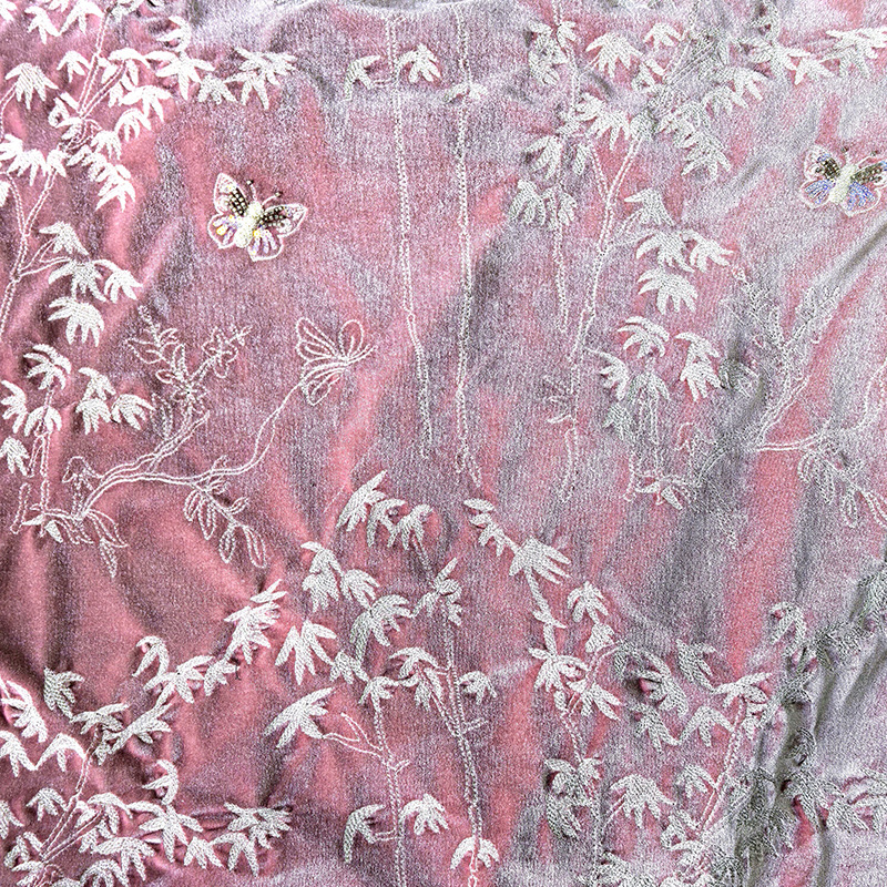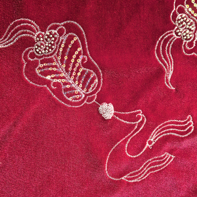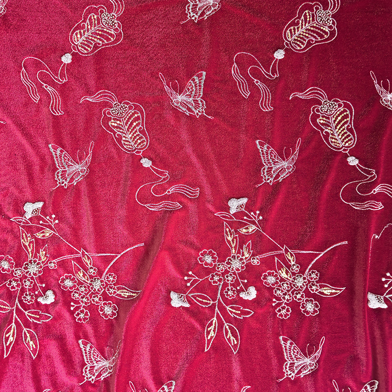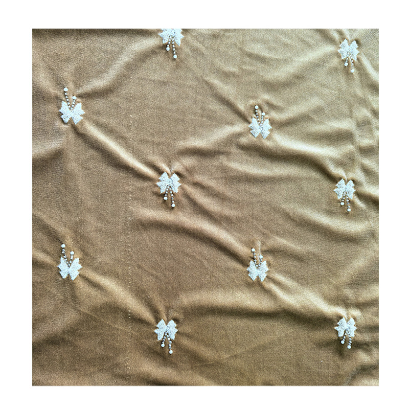 新款丝绒面料绣花轻奢小香风亮片绣花面料 时装珠管绣花面料
