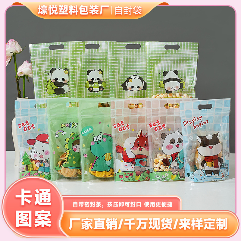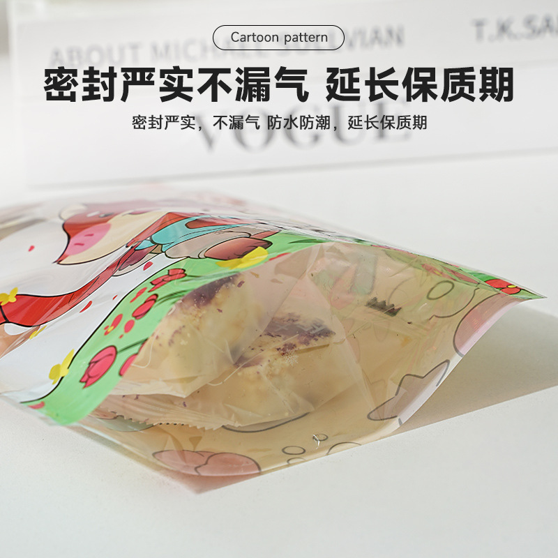 三边封自立袋雪花酥奶枣拉链袋食品级卡通坚果休闲密封包装袋烘焙