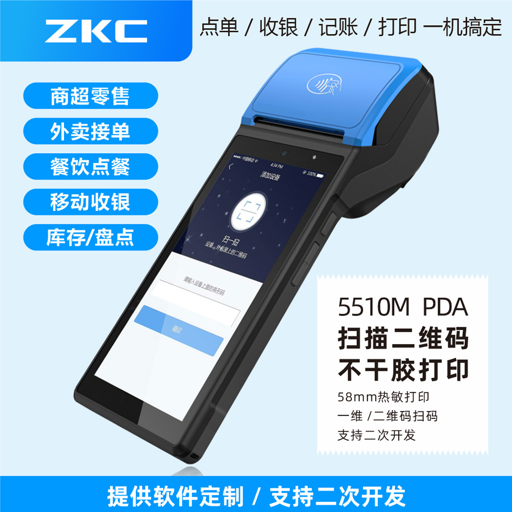 5.5寸全屏2+16G安卓12扫码+58打印小票不干胶标签NFC手持终端PDA