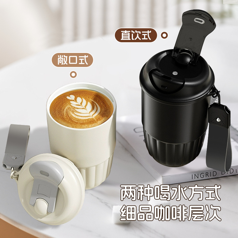 新款316不锈钢保温杯带提绳户外便携企鹅杯家用办公轻奢咖啡杯