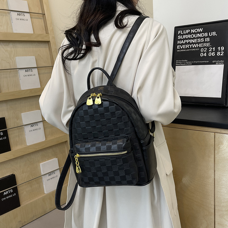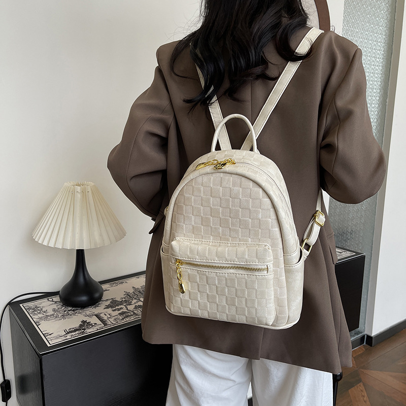 跨境软皮双肩包轻便女生新款时尚小背包女士青春校园棋盘格双肩背