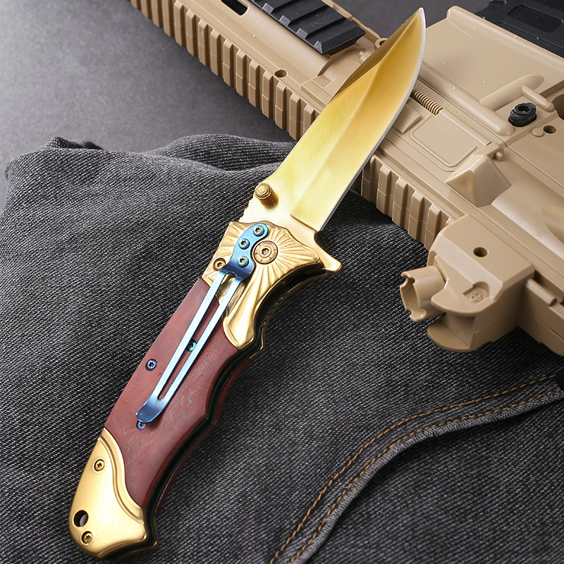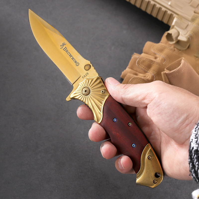 野营求生不锈钢户外刀高硬度实木柄折刀便携多用途阳江折 叠小刀