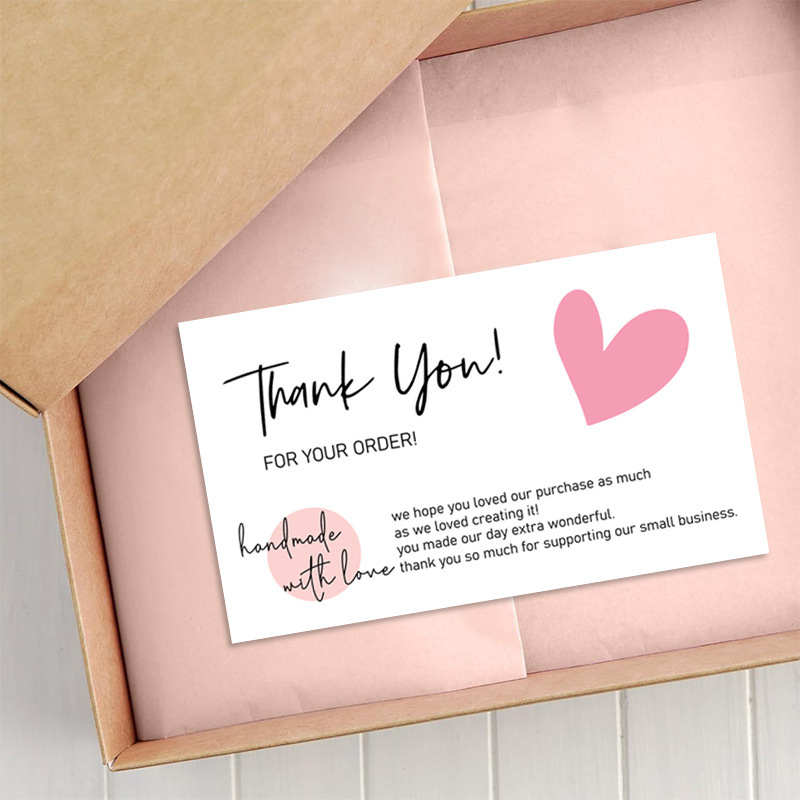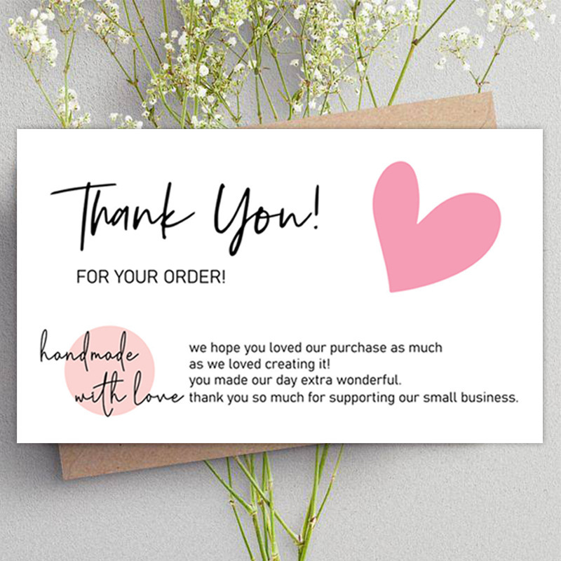 跨境批发粉色爱心感谢卡片thankyou礼品包装小卡片异形封口贴