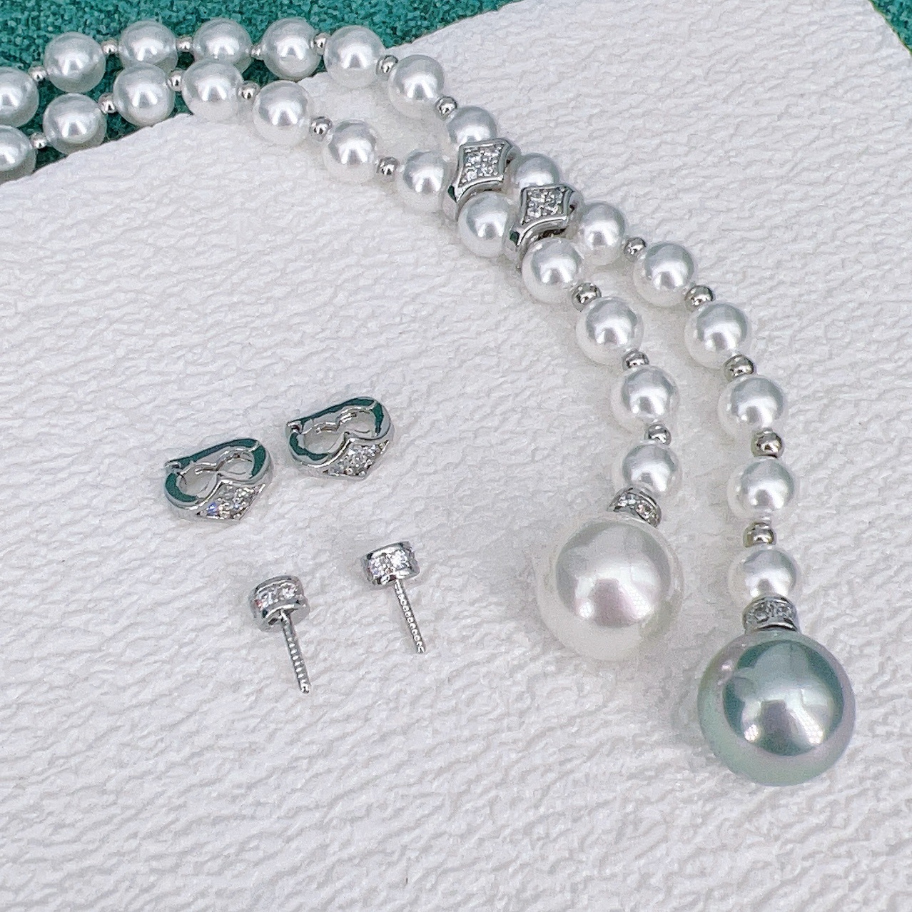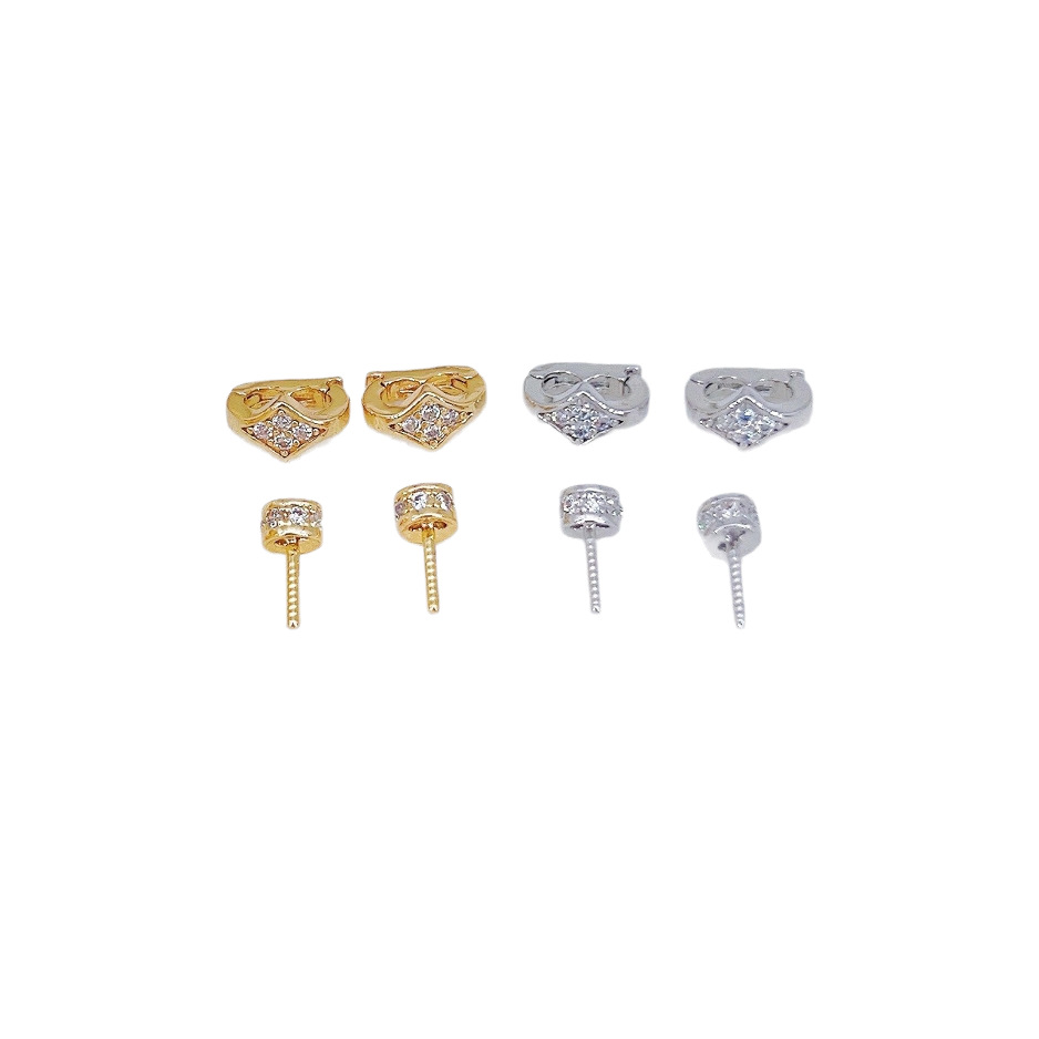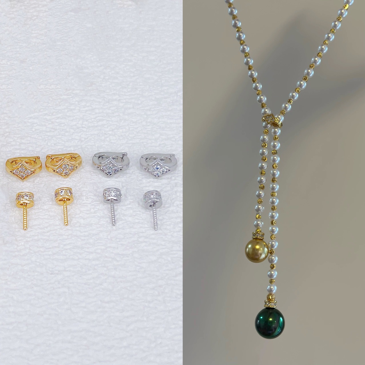 铜镀14k金万能扣锆石扣M家同款双排卡扣手工diy满钻镶嵌珍珠项链