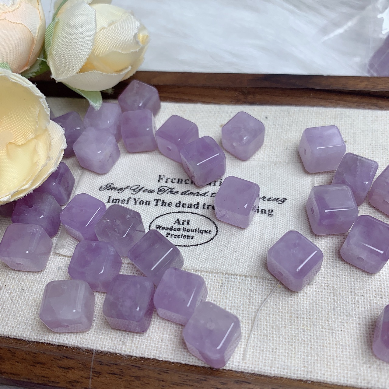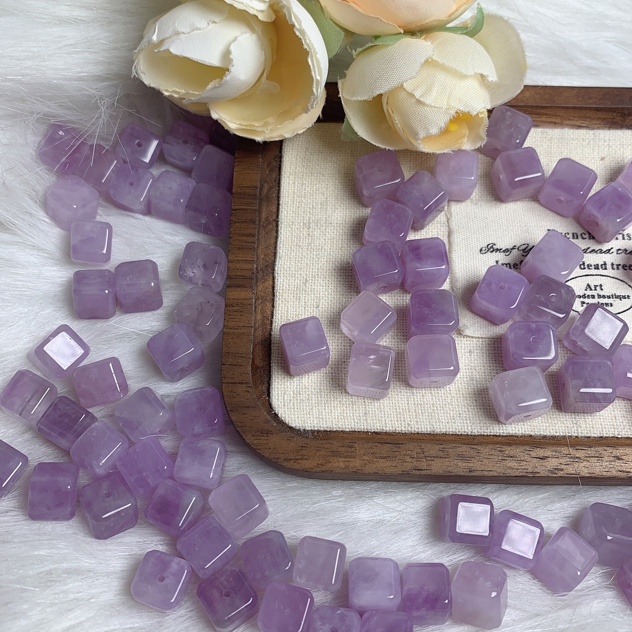 天然薰衣草水晶方糖裸石挂件魔方配饰diy项链手链挂件货源批发