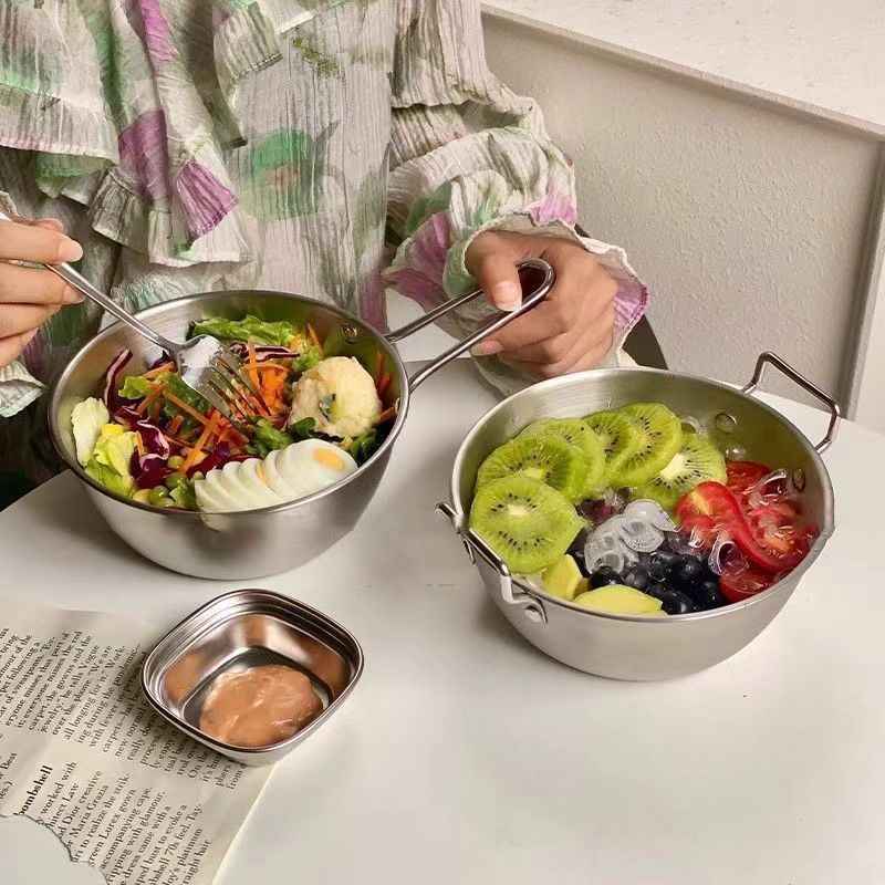 【直产源头】加大号不锈钢泡面碗韩式米酒碗小吃嗦粉碗带单双耳碗