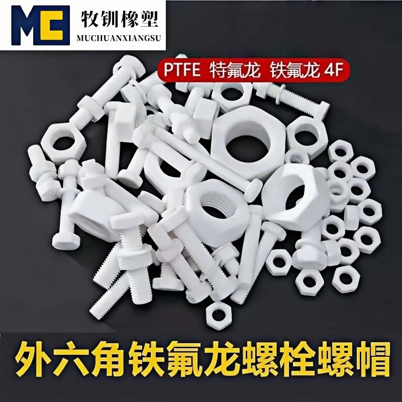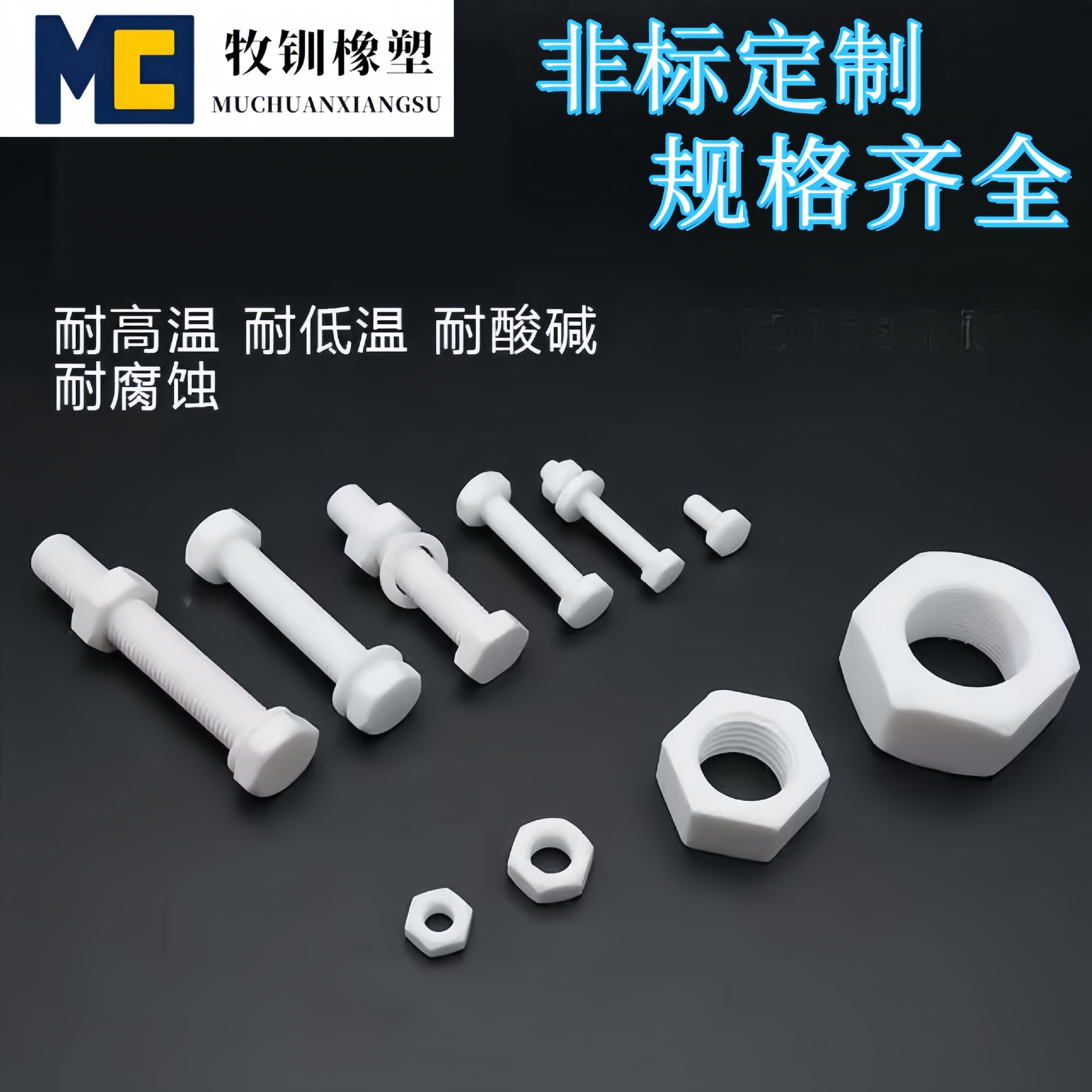 聚四氟乙烯外六角螺丝PTFE螺杆铁氟龙特氟龙螺栓四氟螺母全螺纹