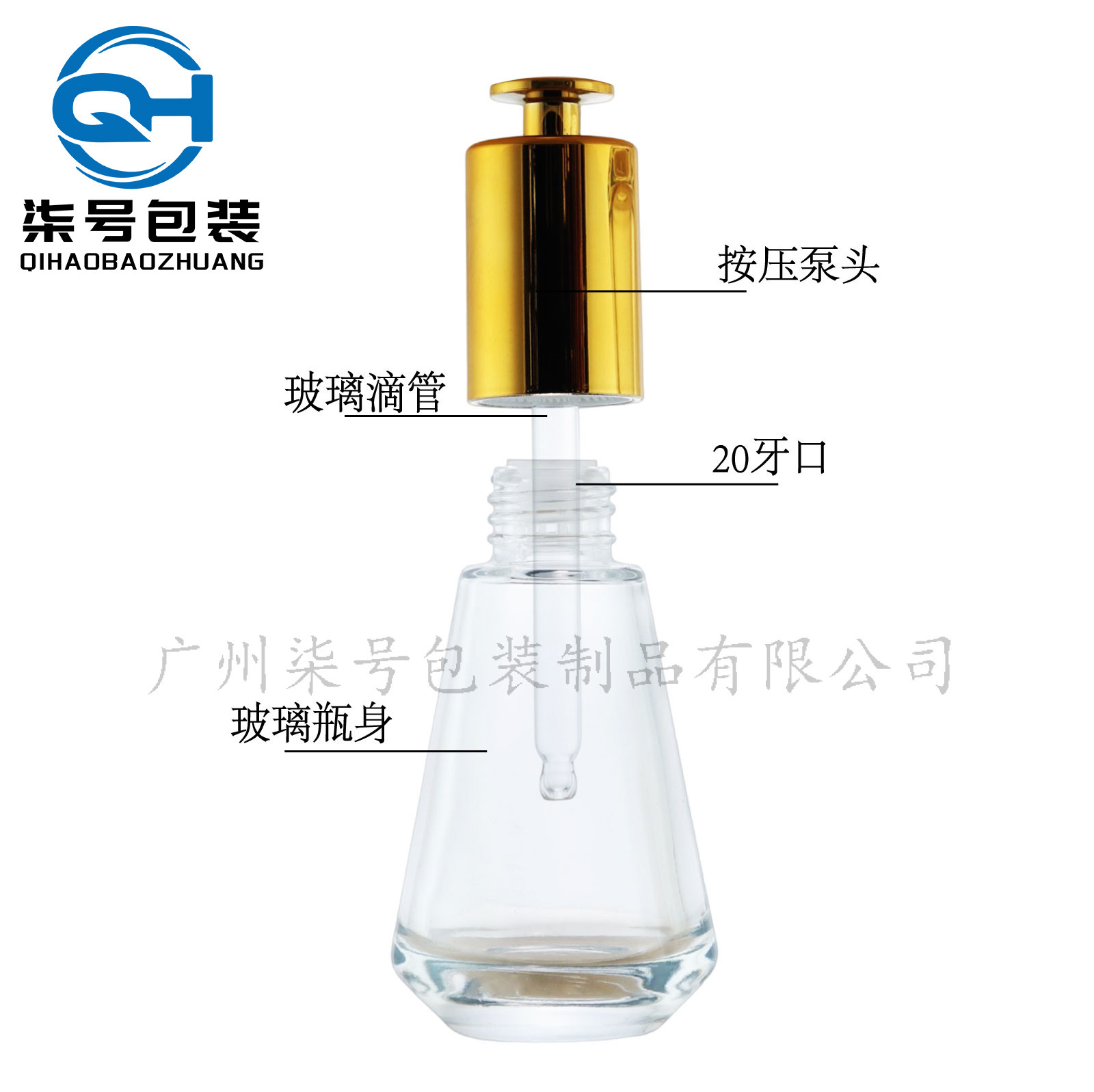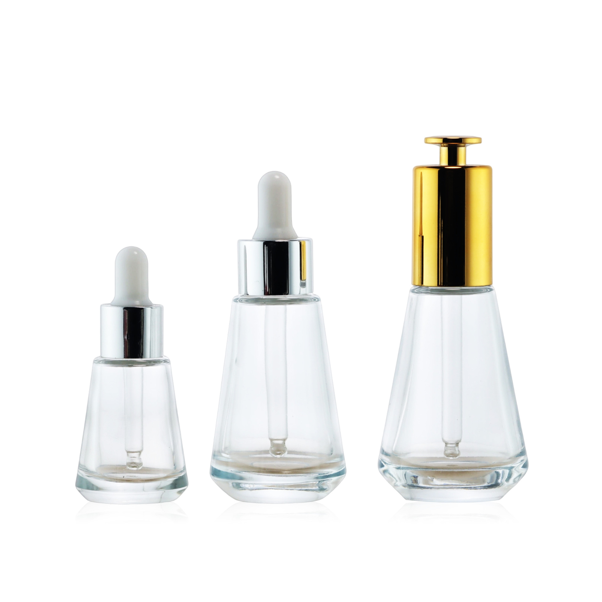 现货15/30/50ml锥形玻璃瓶精华液瓶滴管精油瓶化妆品玻璃分装瓶