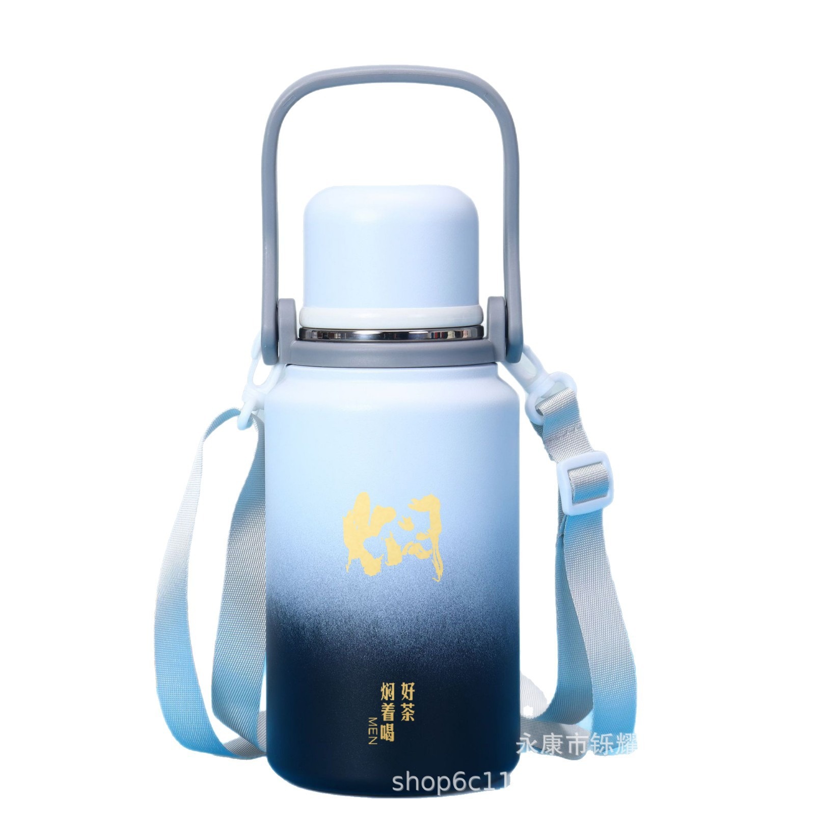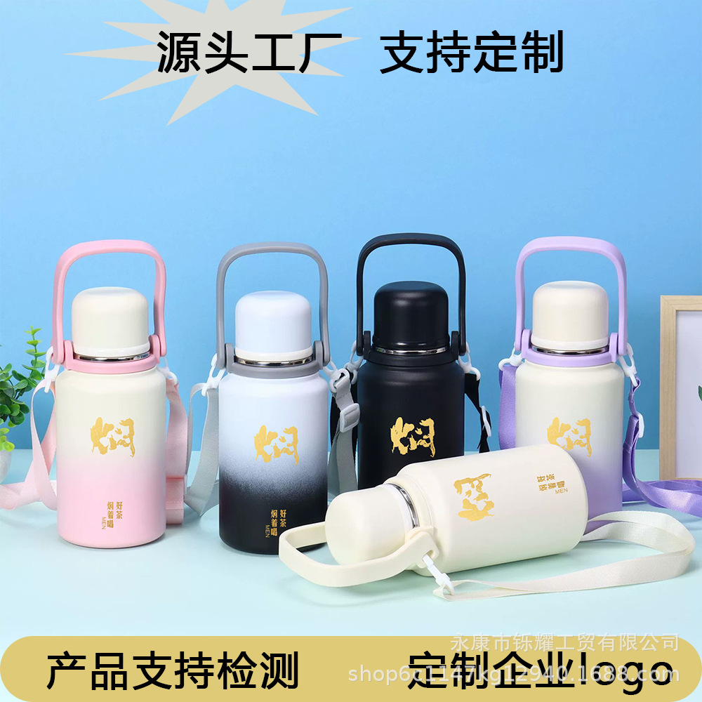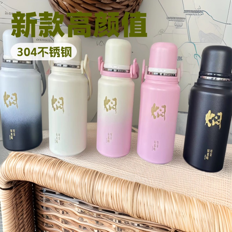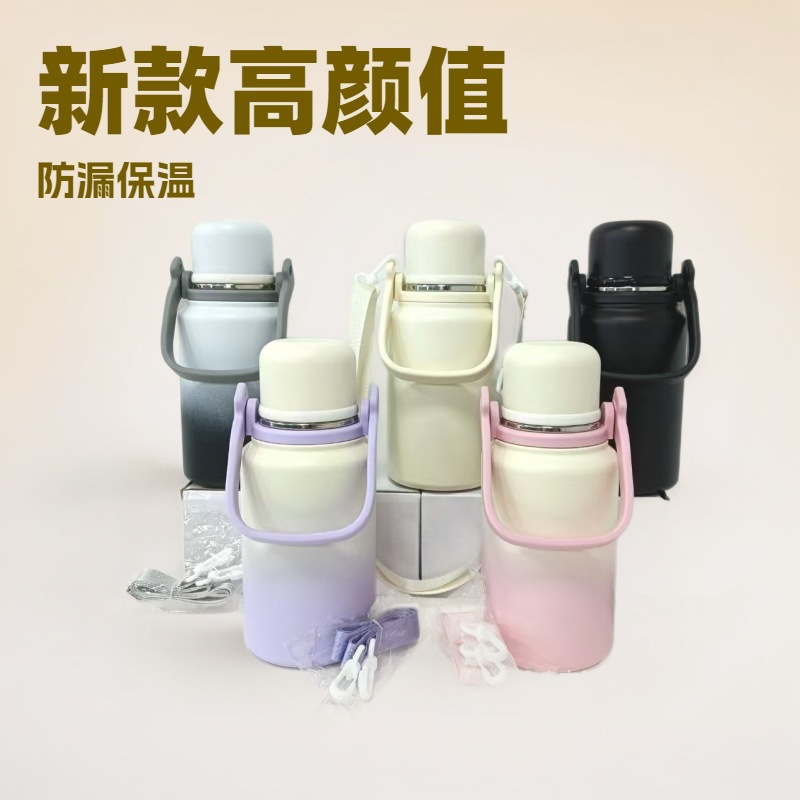 新款高颜值大容量不锈钢焖茶壶保温壶手提壶提绳斜挎户外运动水壶