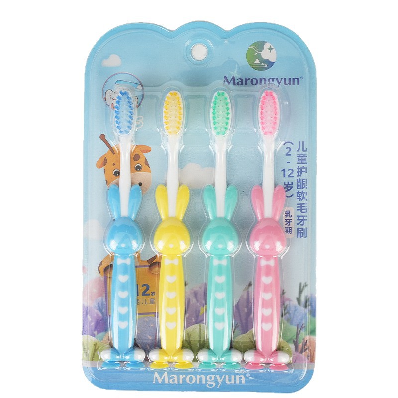 卡通手柄护龈护齿兔子牙刷四支装软毛牙刷小兔吸塑卡通软毛牙刷