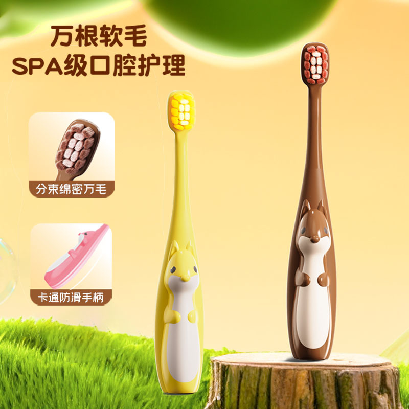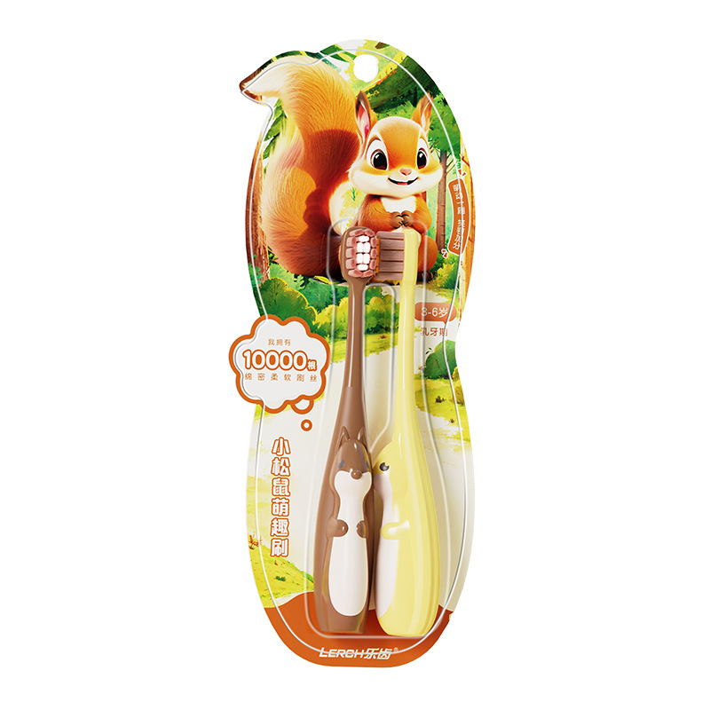 乐齿卡通2支松鼠儿童牙刷软毛3-6-9岁换牙期宝宝牙刷分束万毛牙刷