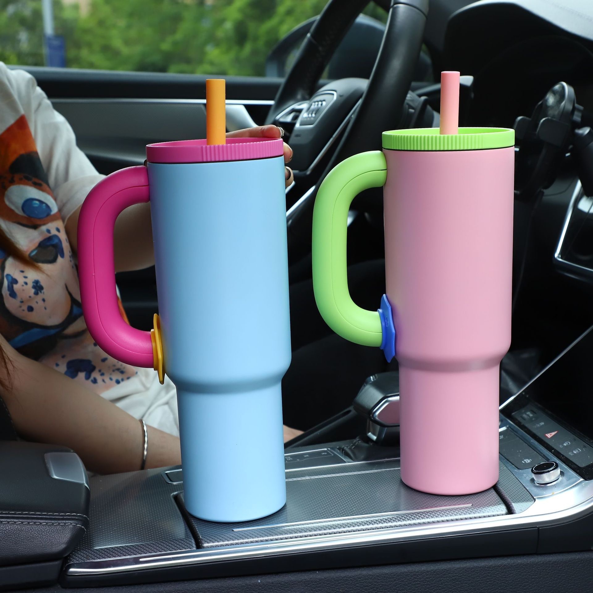 跨境热销304不锈钢汽车杯高颜值多巴胺配色保温杯带手柄吸管杯