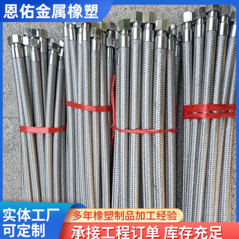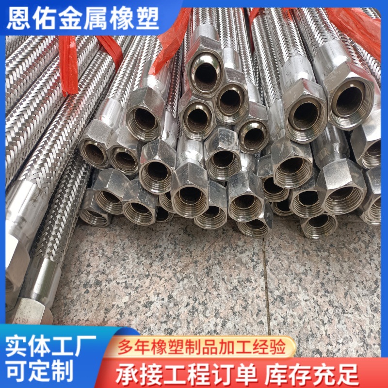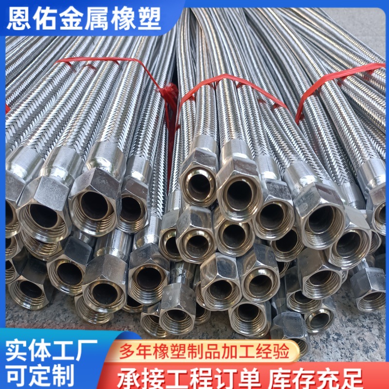 现货内外丝螺纹金属软管高压水油气输送不锈钢钢丝编织螺母式软管