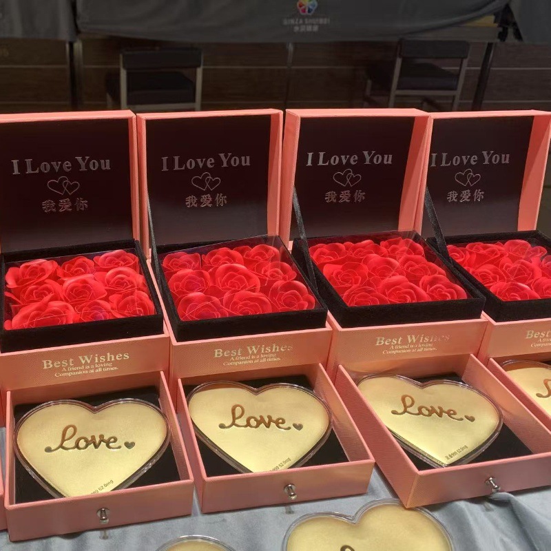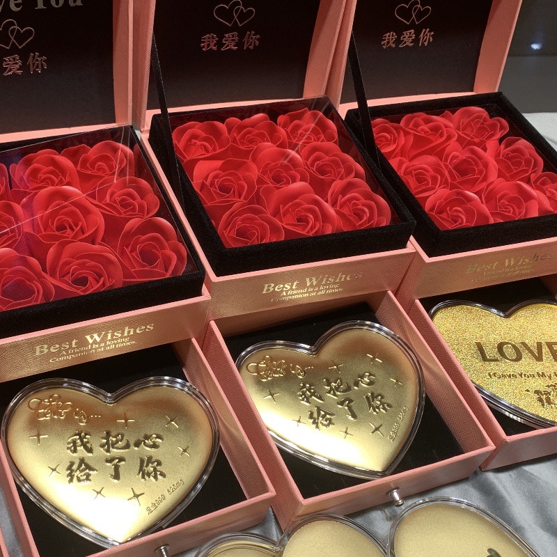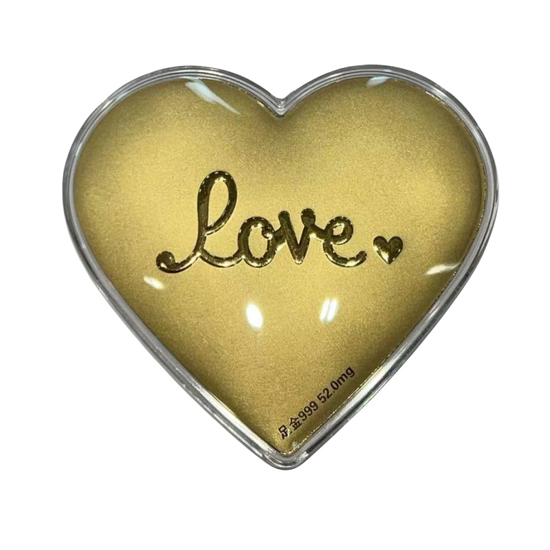 足金999爱心大饼金币纯金520心形送女朋友七夕情人节水贝婚庆礼盒