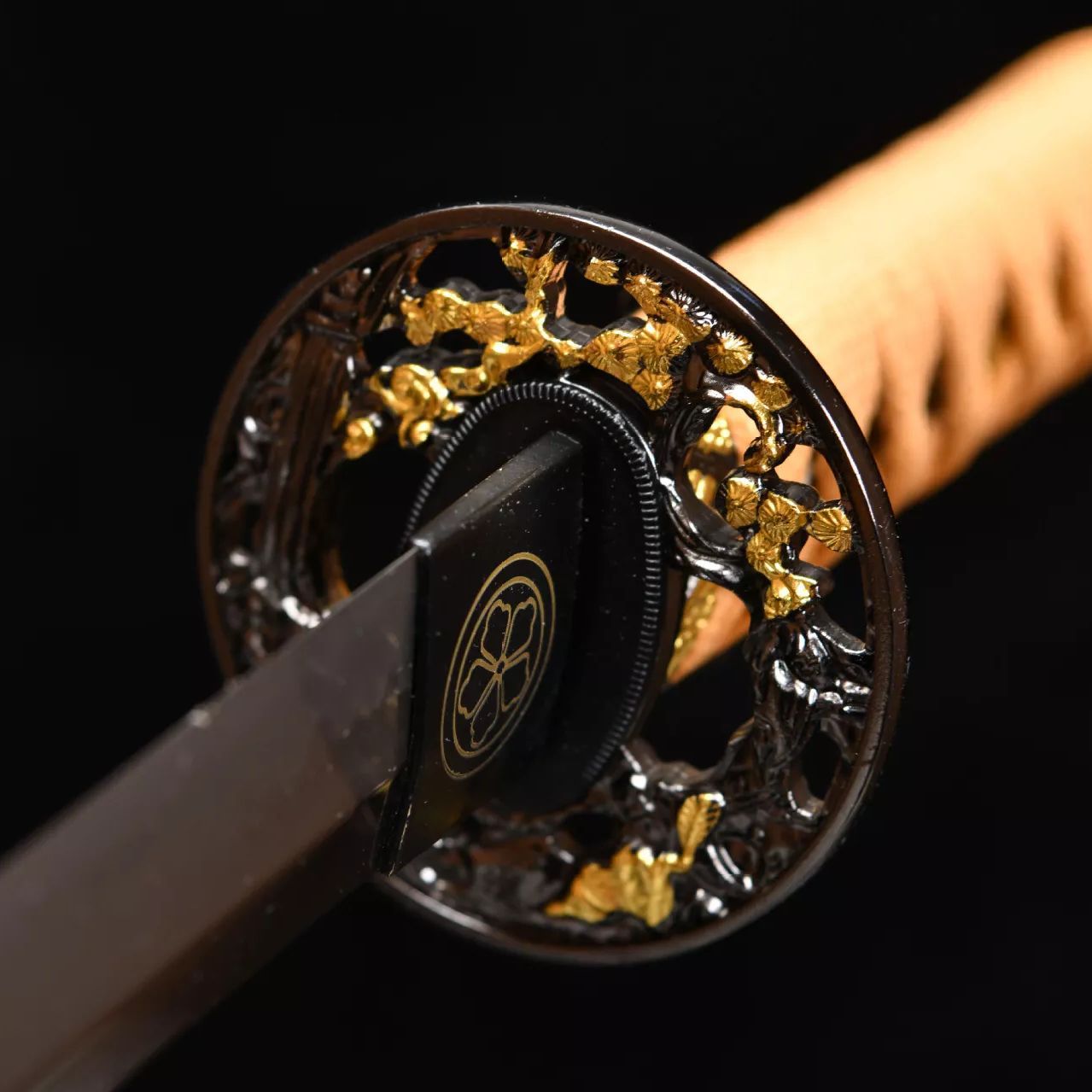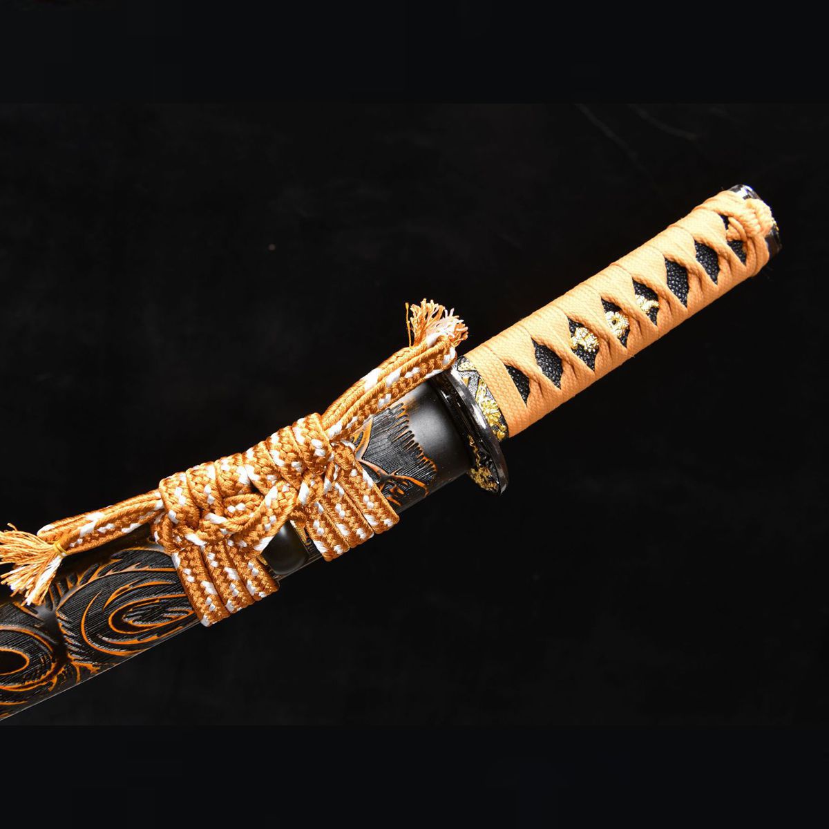 龙泉手工刀剑短款12寸T10钢烧刃丁字纹三色研日式打刀未开刃