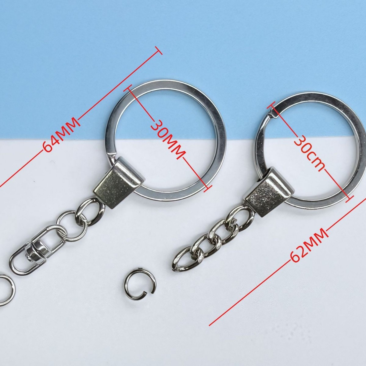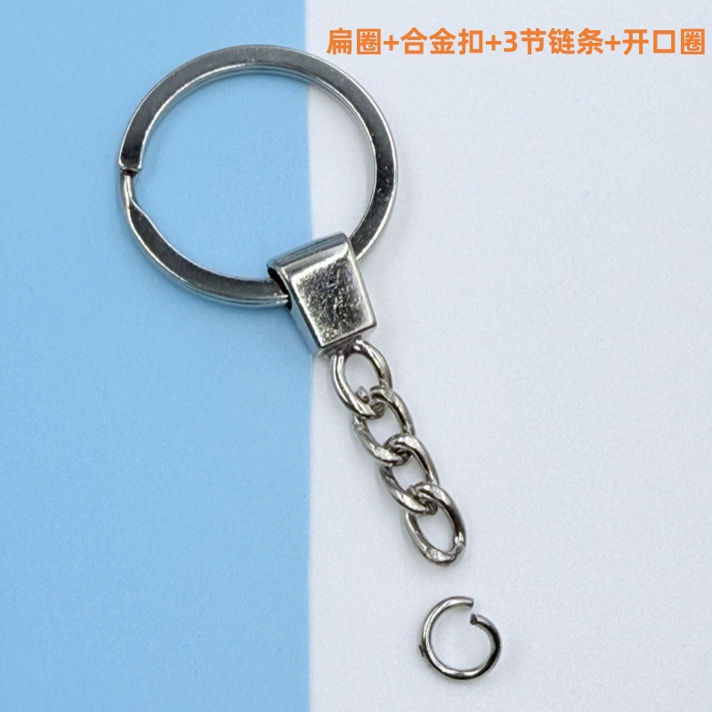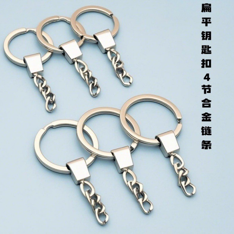 30MM平圈钥匙链合金头4节链条 DIY饰品钥匙扣挂件 钥匙圈批发现货
