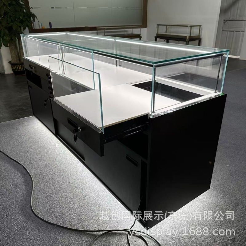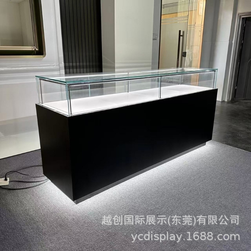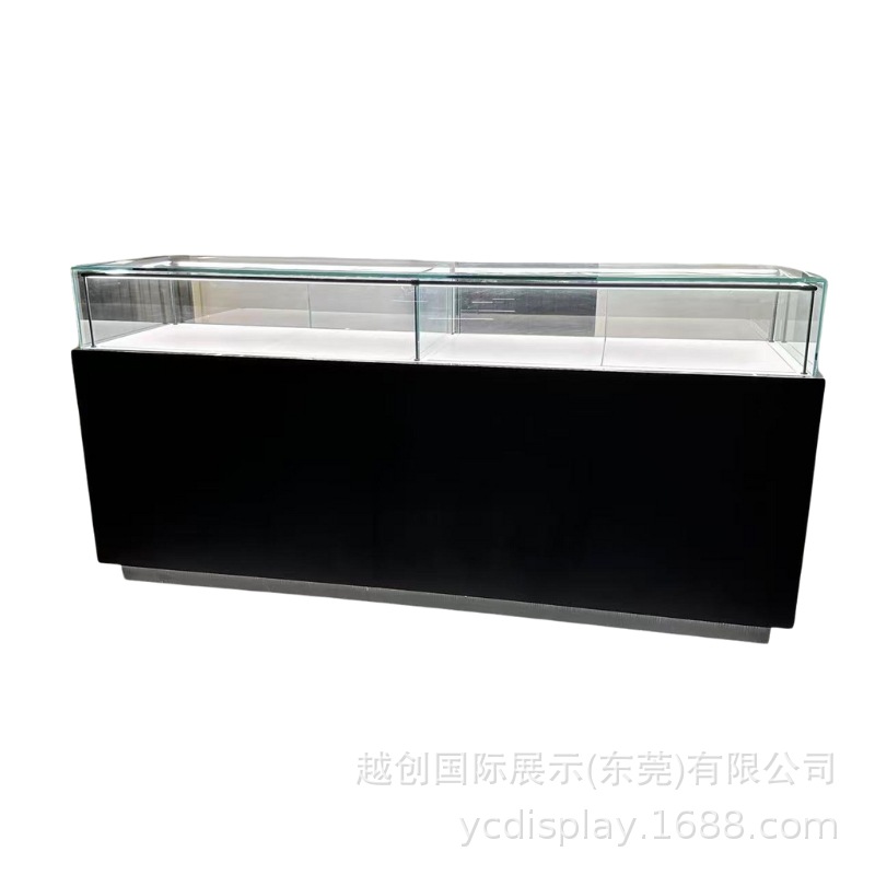 时尚黑色珠宝展柜,出口柜台定制木纹饰面,矮柜开启高端展示之旅