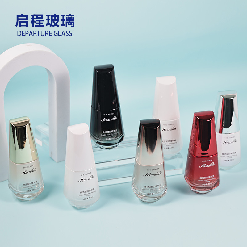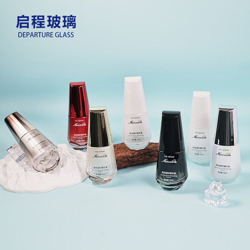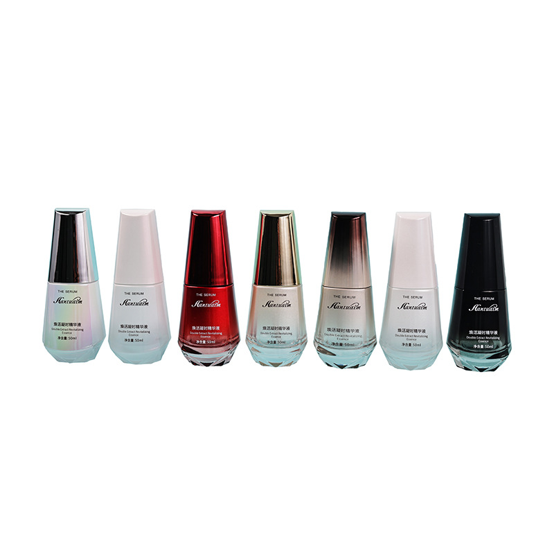 新品圆柱形精华瓶护肤品玻璃瓶50ml水乳瓶按压乳液瓶化妆品分装瓶