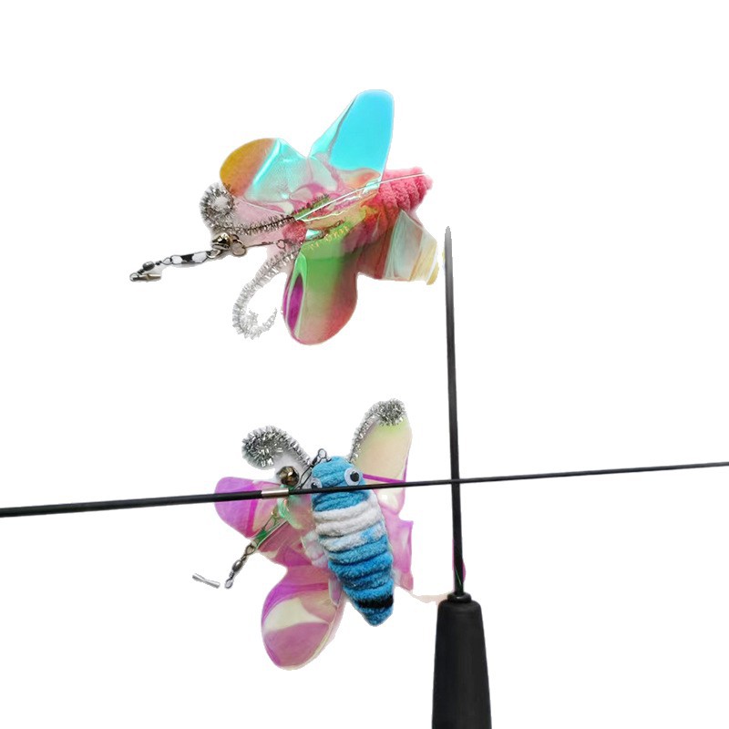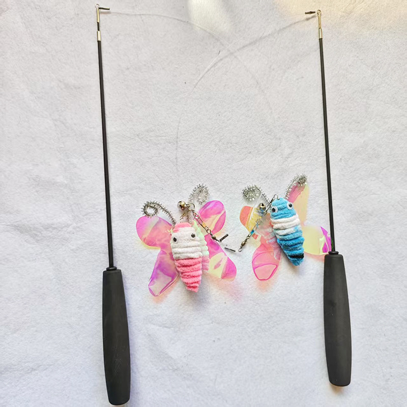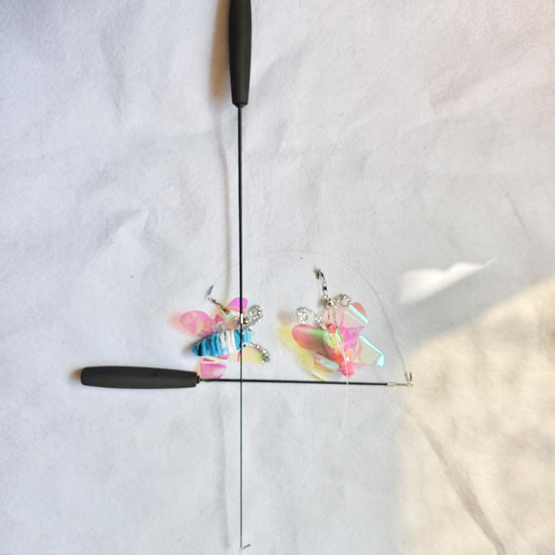 厂家批发宠物玩具五彩逗猫棒猫咪互动自嗨长杆两节钓鱼杆逗猫玩具