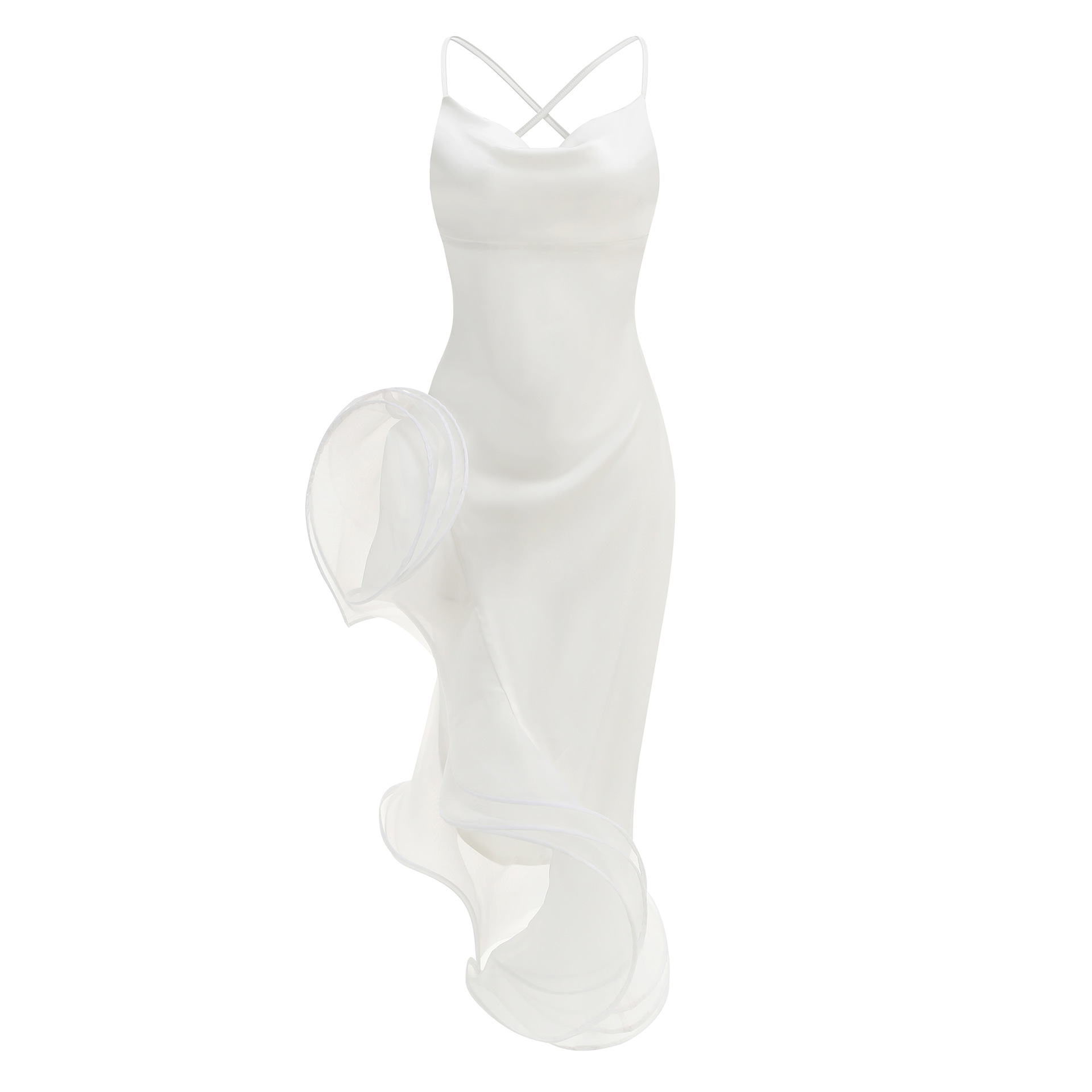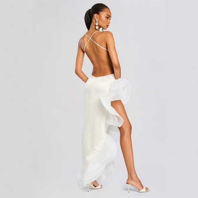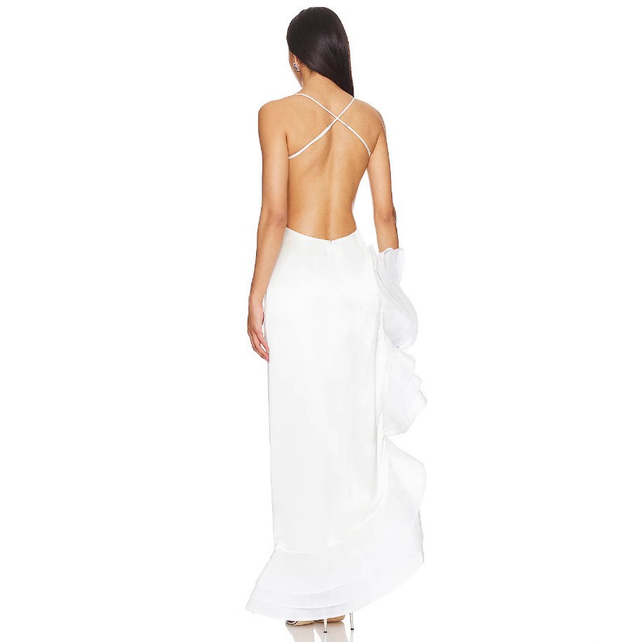 亚马逊速卖通摄影宴会时装秀晚礼服名媛风吊带荷叶造型性感连衣裙