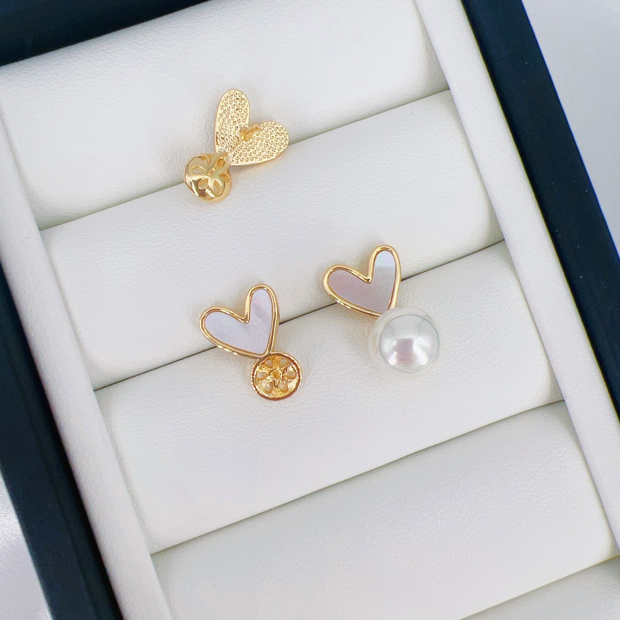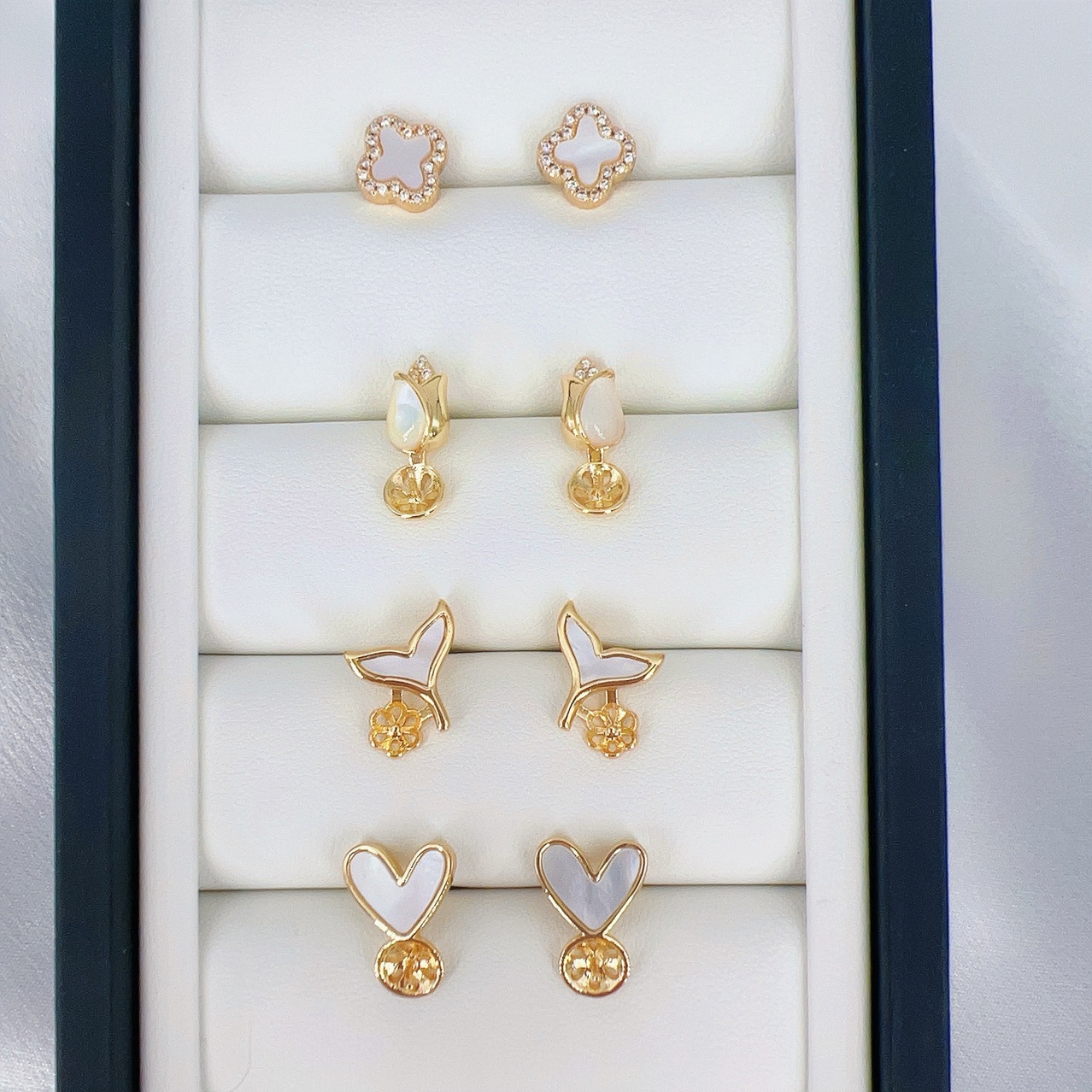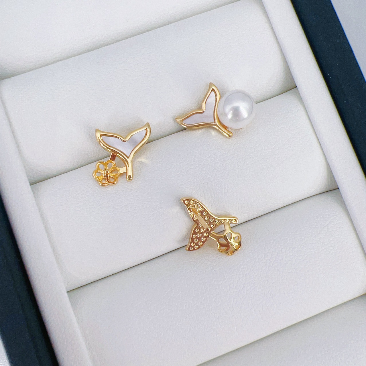 14k包金高级感贝壳天然贝母珍珠耳环 郁金香四叶草鱼尾巴耳钉空托
