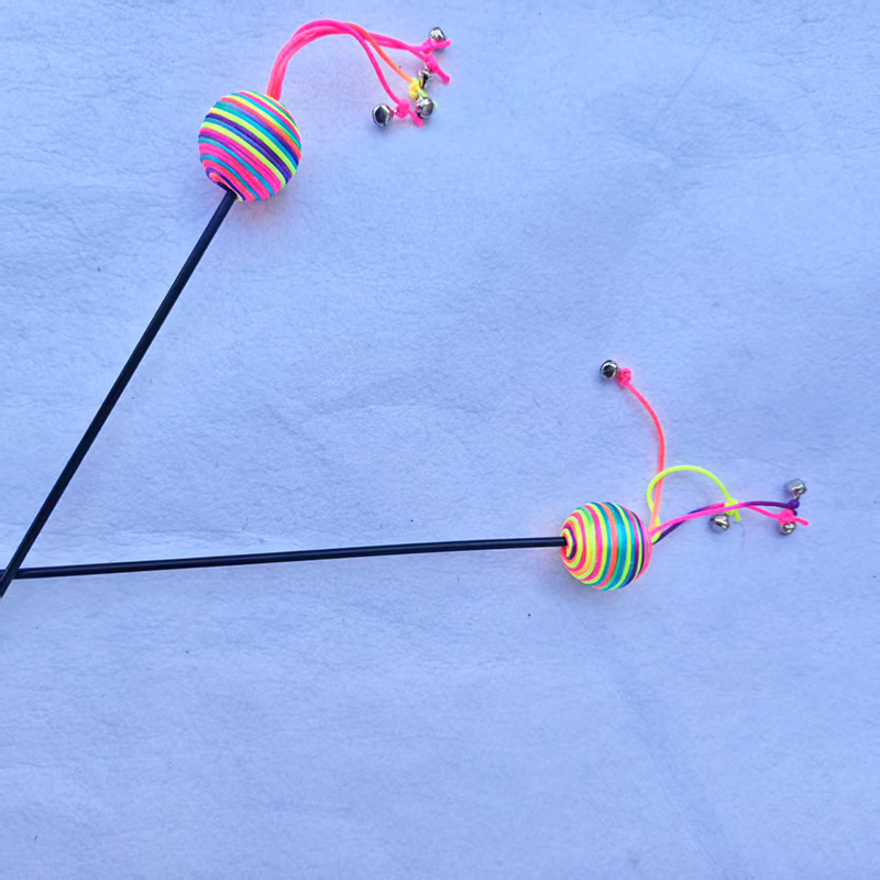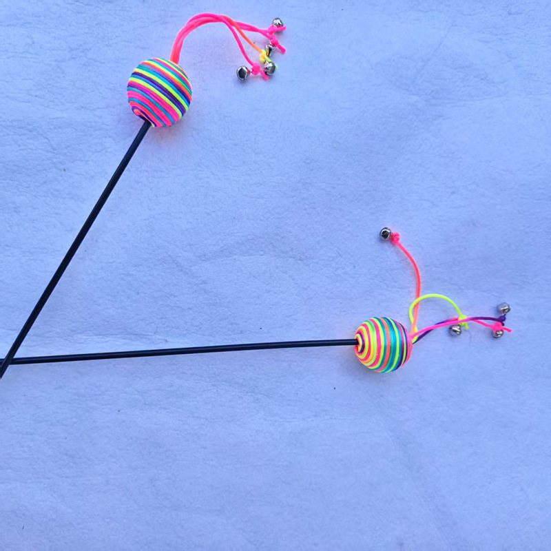 七彩球四尾铃铛逗猫棒001