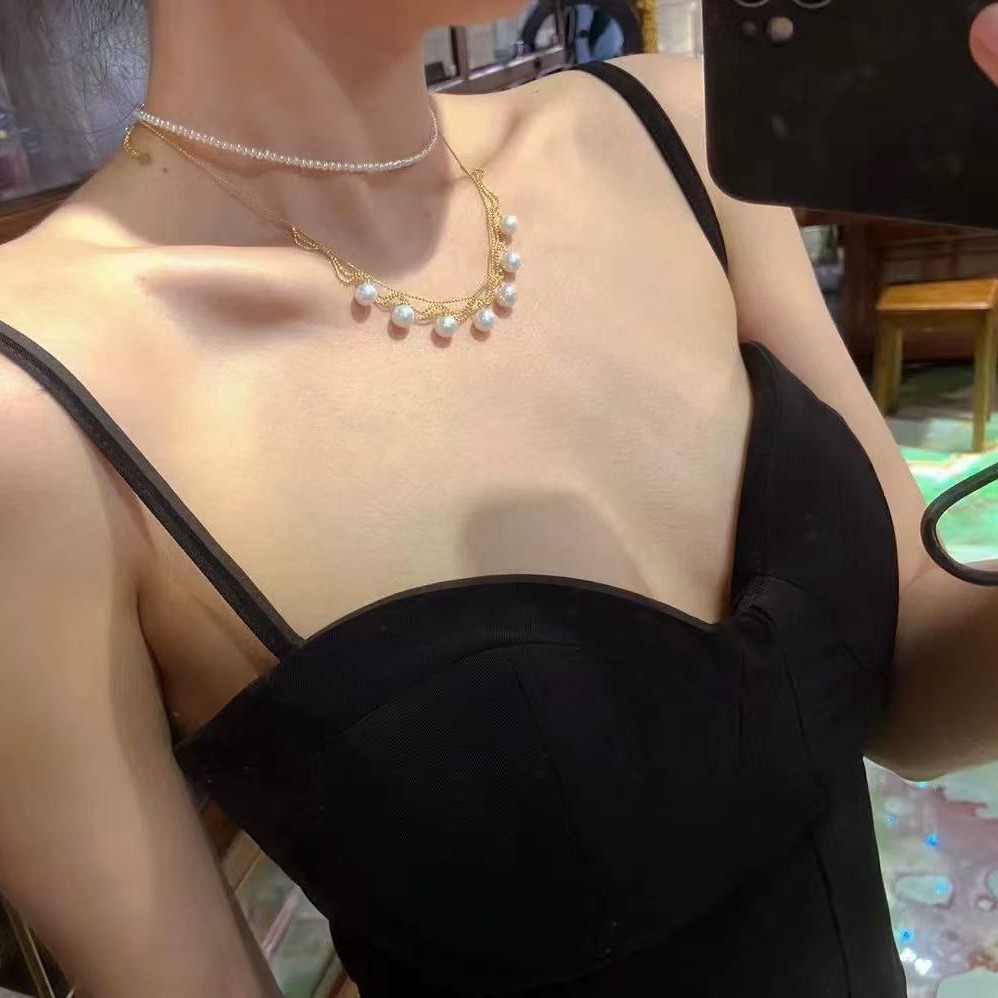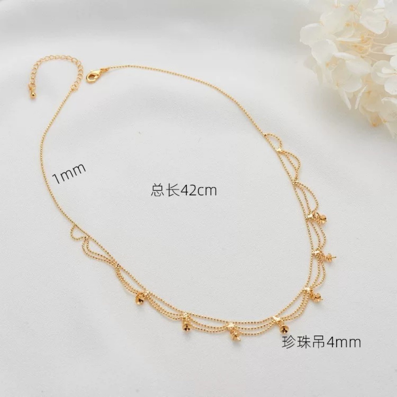 14k包金多珠款珍珠项链豆豆链蕾丝宫廷法式复古DIY手工空托复古风