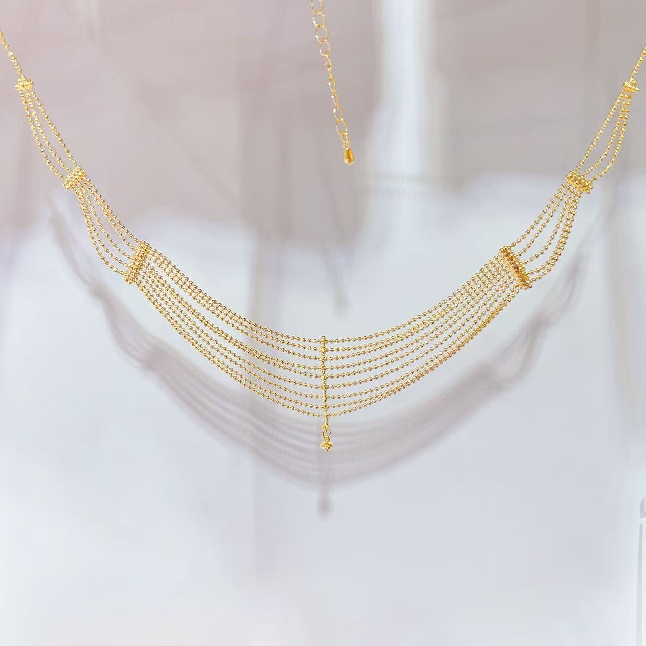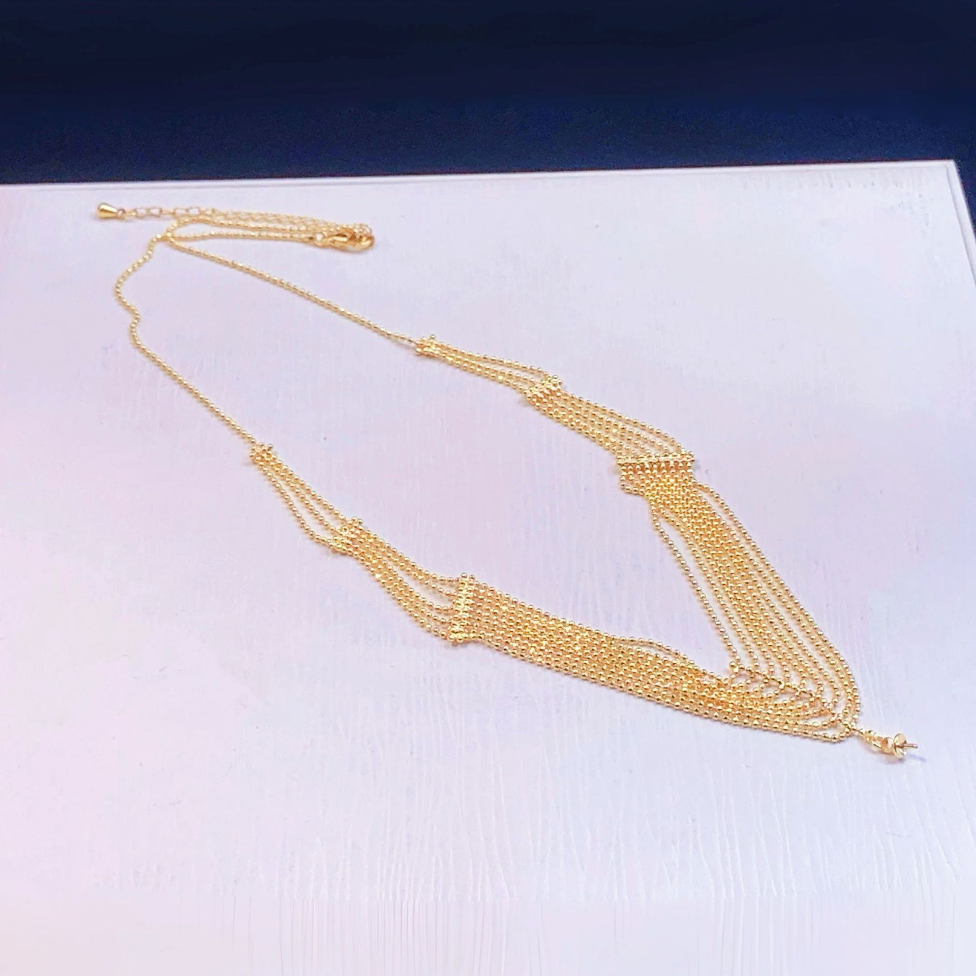 14k包金法式多层高级设计感宫廷风中古流苏珍珠项链DIY珍珠空托
