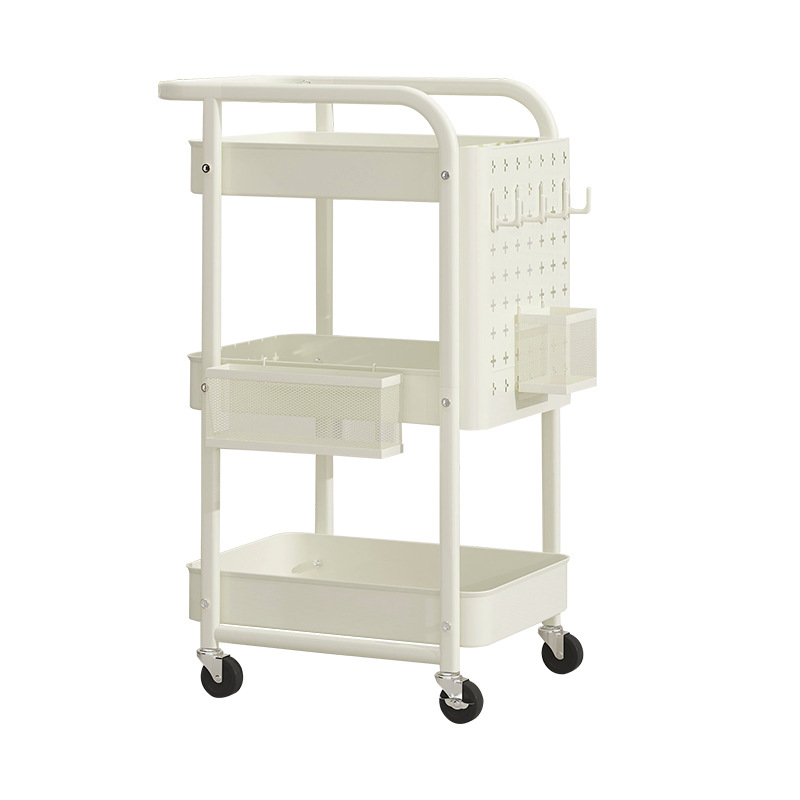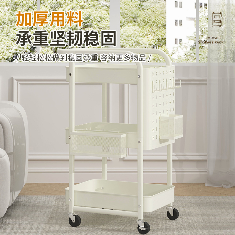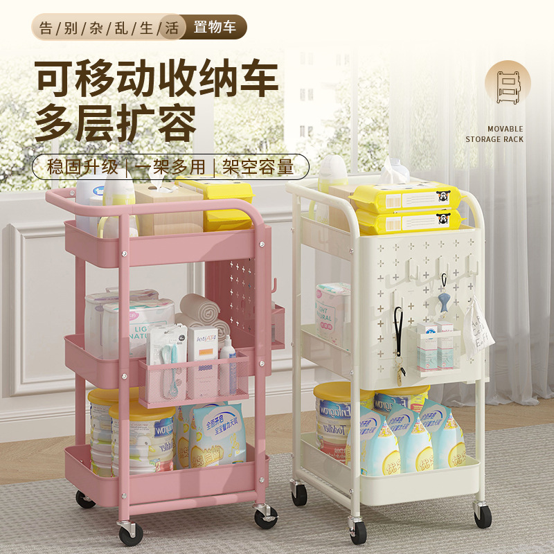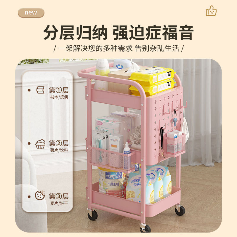 厨房落地置物架多层零食收纳架厂家批发带洞洞板挂篮小推车置物架