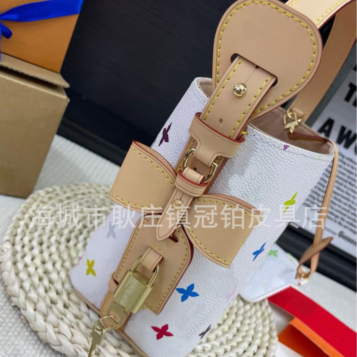 2025新款女包All In bb白三彩水桶包手提斜挎单肩菜篮子包M13089