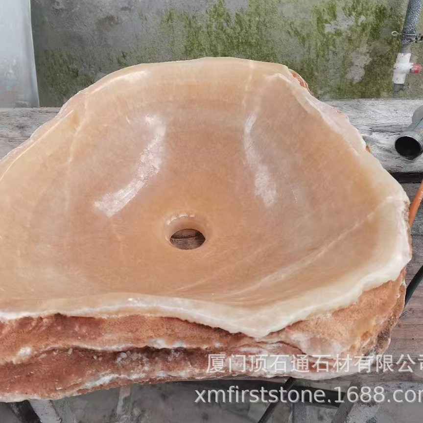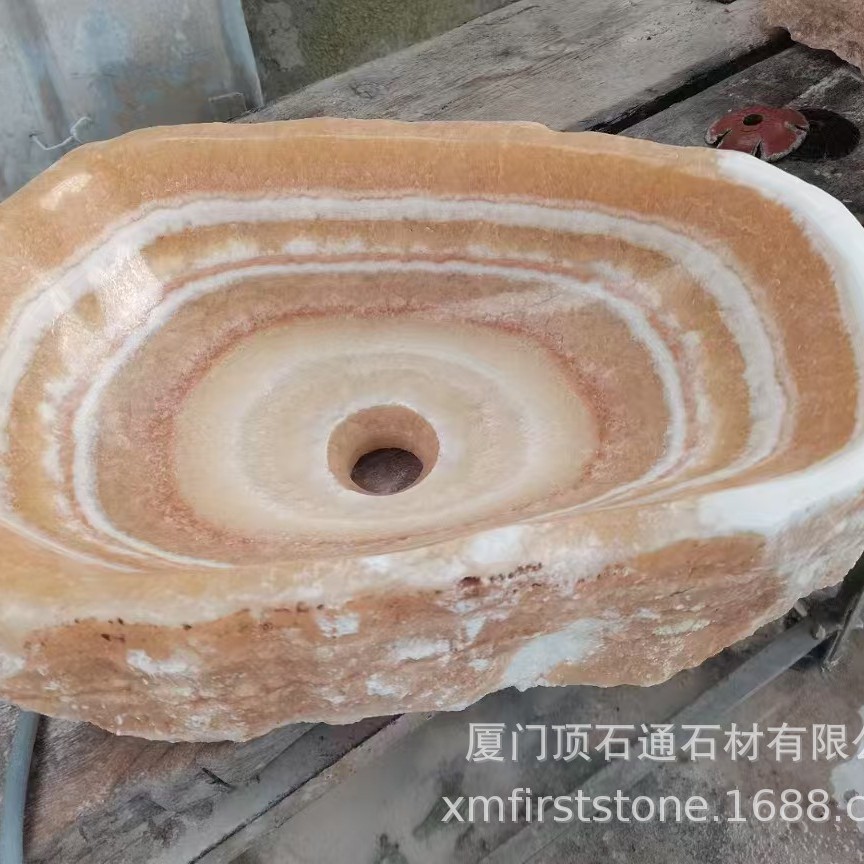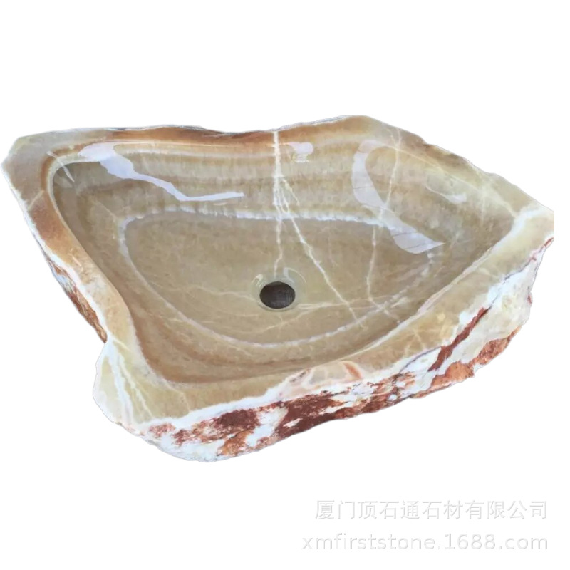 轻奢天然红木纹洗手盆定 制酒店浴室装饰创意米黄玉自然原石盆