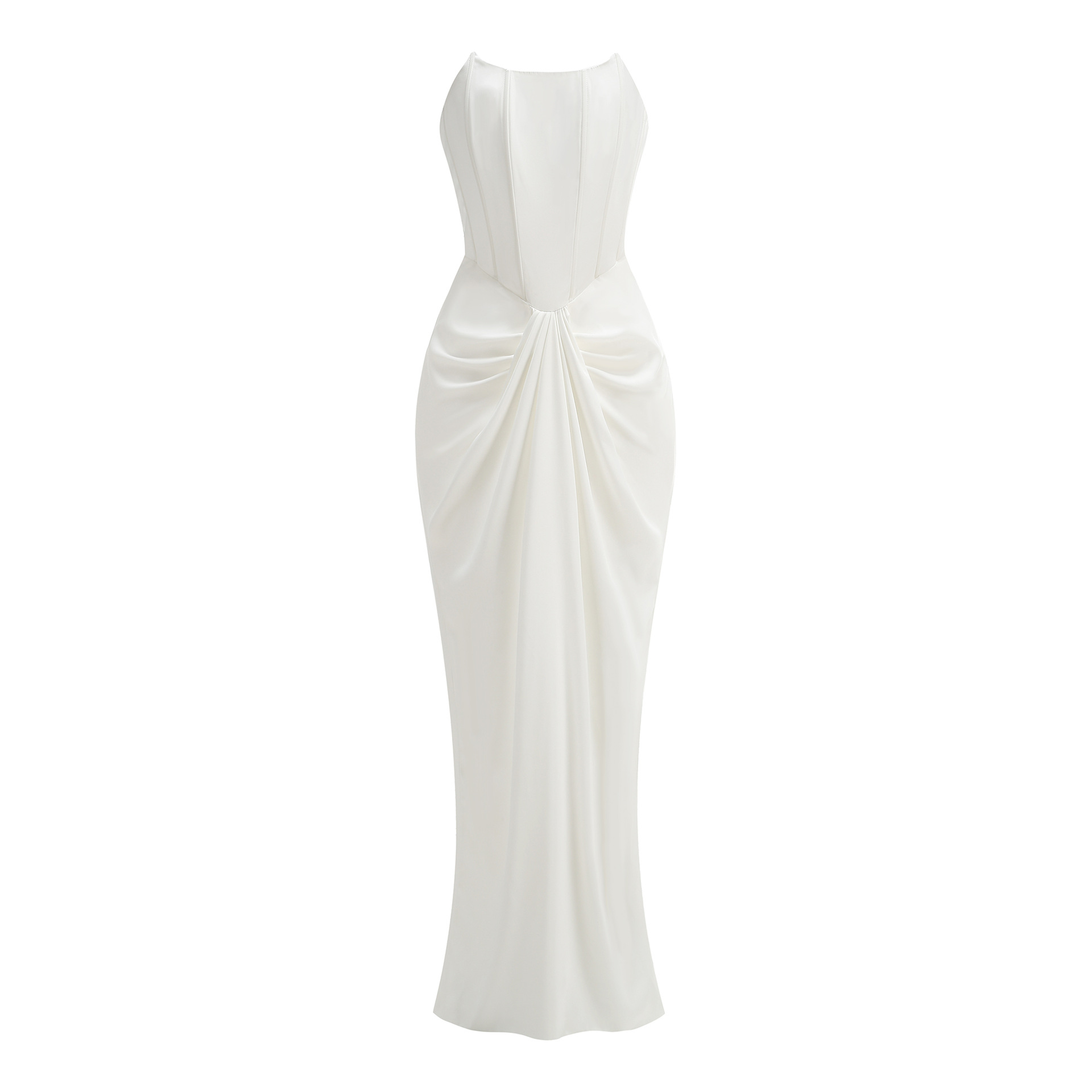 新品跨境亚马逊奢华女装派对晚礼服女时尚白色抹胸鱼骨收腰连衣裙