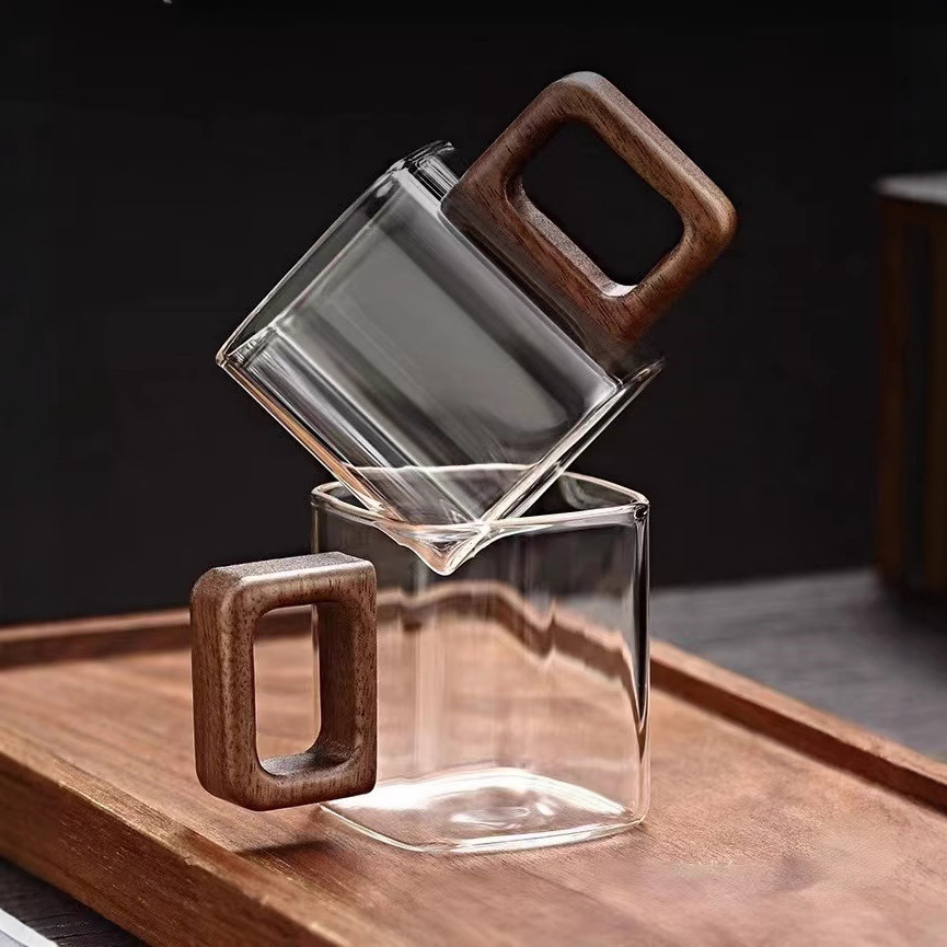 古风玻璃茶杯功夫茶具套装四方日式便携式家用品茗杯透明