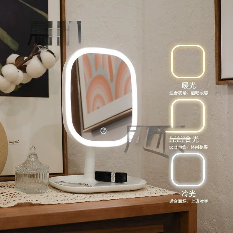 | 颜色 | 方形可旋转#便携式化妆镜 | 尺寸 | 霜白【有灯款/三色无极调光】+带USB数据线 |