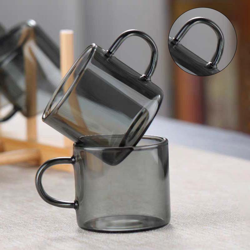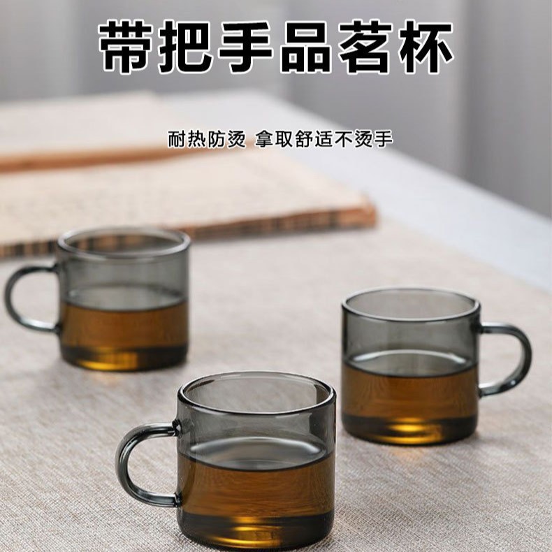 透黑色高硼硅玻璃品茗杯家用迷你小品杯玻璃品茗杯带把手小茶杯