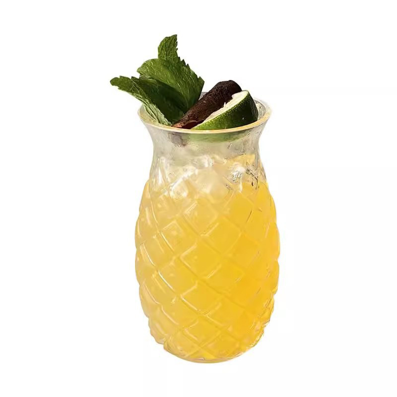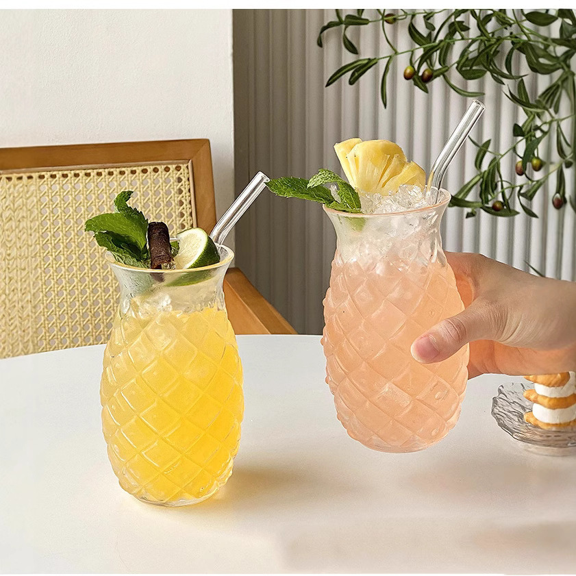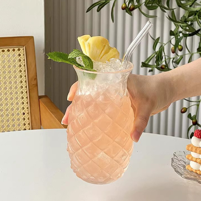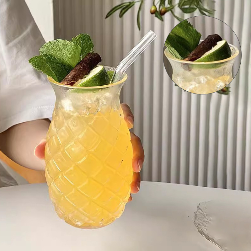 高硼硅透明玻璃杯果茶杯大容量单层透明吸管菠萝果茶杯