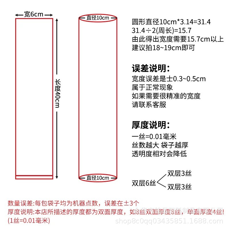 | 误差 | 0.05mm左右 | 规格型号 | 双层14丝加厚*宽20cm长100cm(10只) |