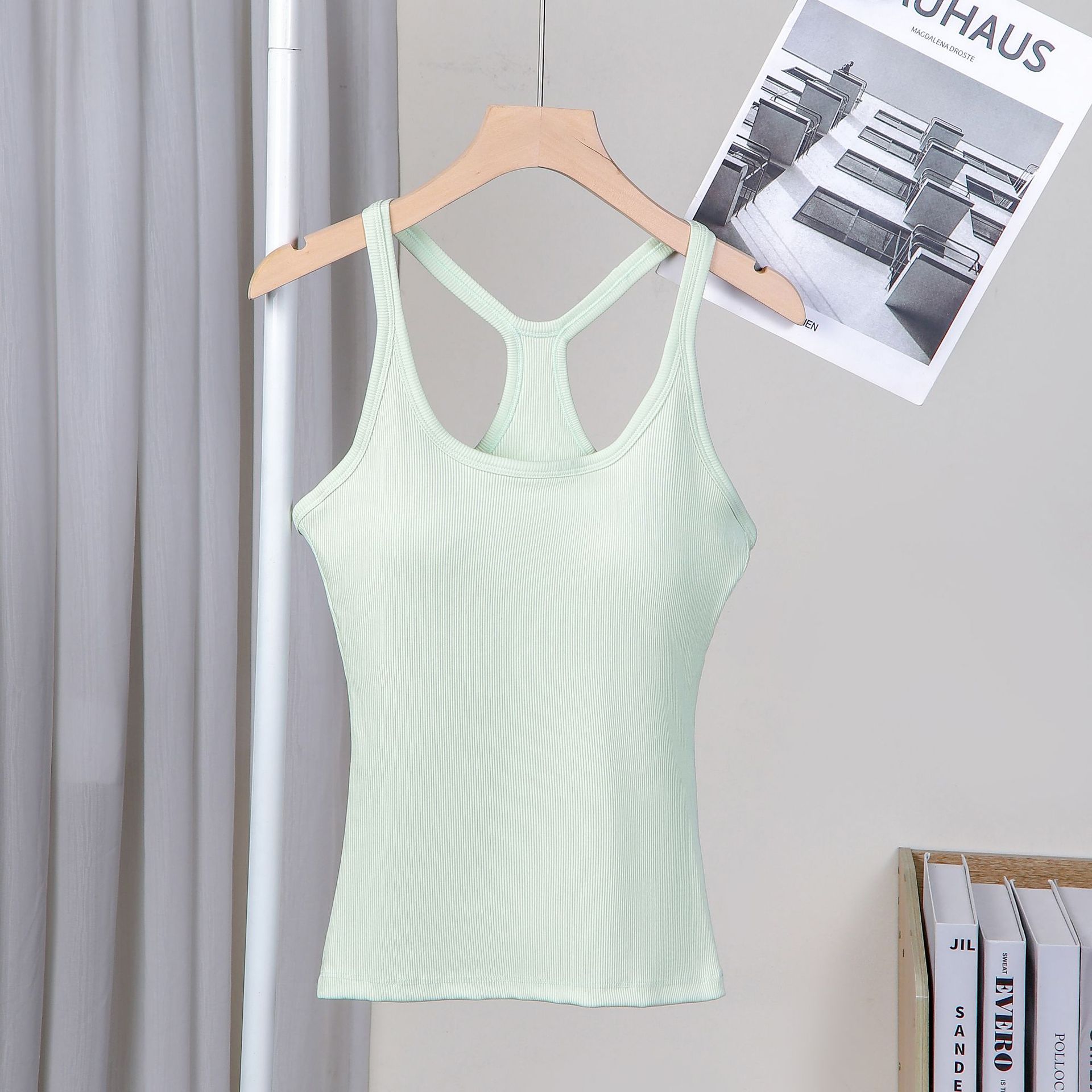 一体式女款运动工字背心健身大弹力吊带上衣自带胸垫冰丝针织服饰